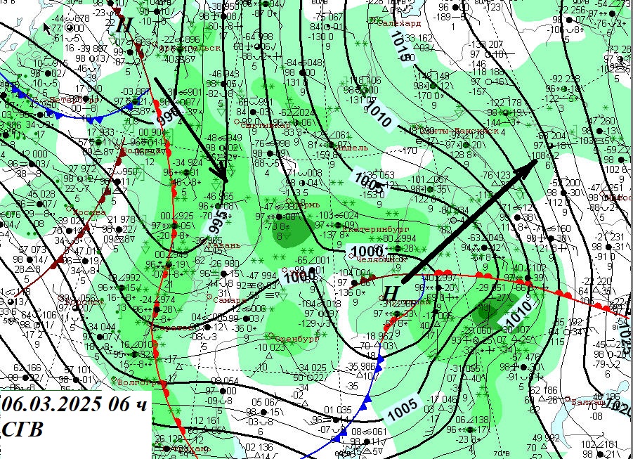 Сейчас в атмосфере господствуют северо-западные воздушные течения, пересекающие Европейскую часть России от севера Балтики до устья Волги. По этой воздушной реке катятся на юг частные циклоны, один из них минувшей ночью слегка задел территорию Свердловской области своей холодной северной стороной.