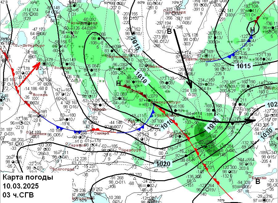 Северо-западный циклон принес снегопады: на юго-западе Свердловской, в Челябинской области и в Пермском крае за сутки выпало до 4-8 мм осадков, высота снежного покрова повысилась на 3-8 см. В Екатеринбурге днем 9 марта и ночью 10 марта выпало 3 мм осадков, снежный покров подрос на 4 см и по постоянной рейке его высота утром была 31 см.