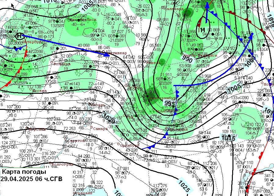 30 апреля новый, более спокойный, циклон переместится с Санкт-Петербурга в Предуралье, принесет порцию осадков преимущественно в виде дождя, на севере области с мокрым снегом.