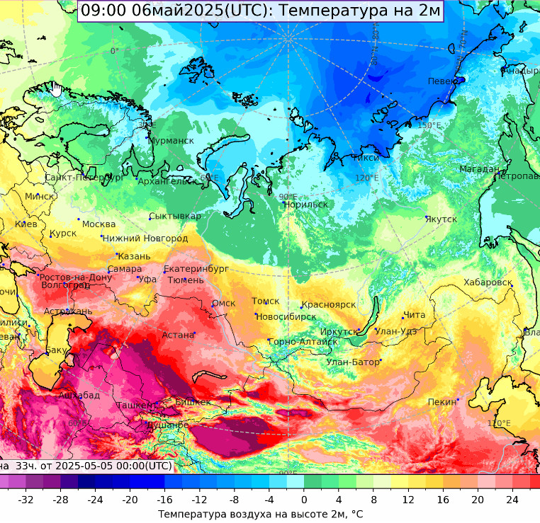 Теплую погоду с почти летней температурой 6 мая обеспечит циклон, проходящий в северных широтах, в направлении Сыктывкар-Салехард. 7 мая холодный фронт циклона несколько понизит температуру в Свердловской области, в большей степени на севере. Осадков в эти днем немного.