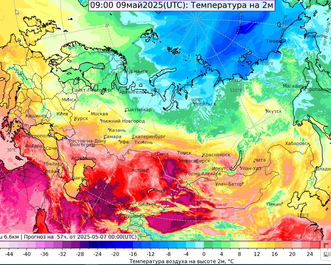 Прогноз температуры воздуха в 14 ч 9 мая 2025 года