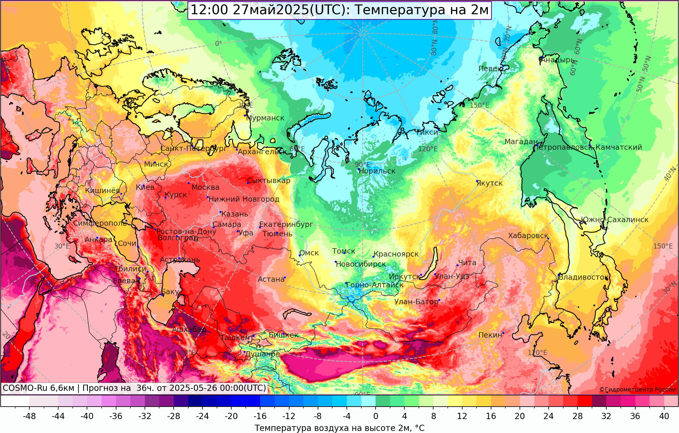 Ночью 25 мая заморозки отмечены в Бутке -0,7°, в Шамарах на поверхности почвы -1°. Средняя суточная температура за вчерашние сутки 25 мая на севере области почти вошла в норму (днем там воздух прогрелся до 20°), на юге области была на 2-6° ниже нормы.