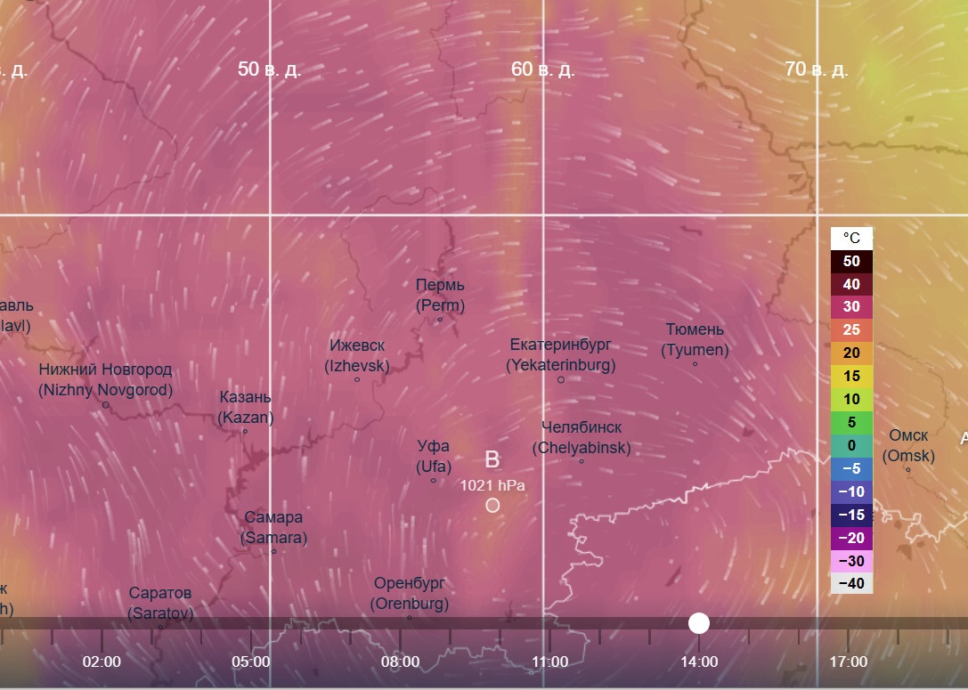 Антициклон, подошедший к Уралу не склонен усиливаться, атмосферное давление в нем не растет, а даже немного понижается. Тем не менее, самые теплые дни впереди. При перемещении центра антициклона через Урал, а затем и его западной периферии, по которой с южными ветрами выносится на север теплый воздух, температура повысится по сравнению со вчерашним днем на 3-5°.
