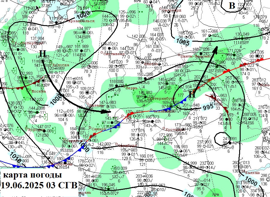 Перерыв в осадках не будет продолжительным. На смену одному циклону, уходящему на северо-восток к Сургуту, от Вологды к Уралу направляется следующий. Поэтому в ближайшие дни 20-22 июня дожди, местами грозы не оставят Уральский регион без внимания. Интенсивные дожди ожидаются на юге Свердловской области. На север области осадки начнут распространяться в ночь на 21 июня, когда циклон обоснуется за горами, а пока там почти без дождей.