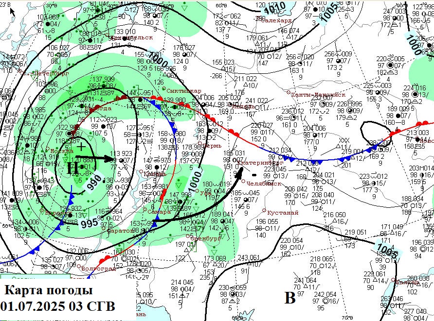 «Рухнувшее», по выражению СМИ, атмосферное давление в столице понемногу начинает повышаться, а глубокий циклон от района Москвы-Нижнего Новгорода, заполняясь, будет медленно продвигаться на восток. Гораздо быстрее шагает его атмосферный фронт, уже сегодня в вечерние часы он вызовет дожди и грозы в самых западных районах Свердловской области, днем они пройдут в большинстве ее районов. Неустойчивая погода с кратковременными дождями, ливнями на умеренном температурном фоне сохранится до конца рабочей недели.