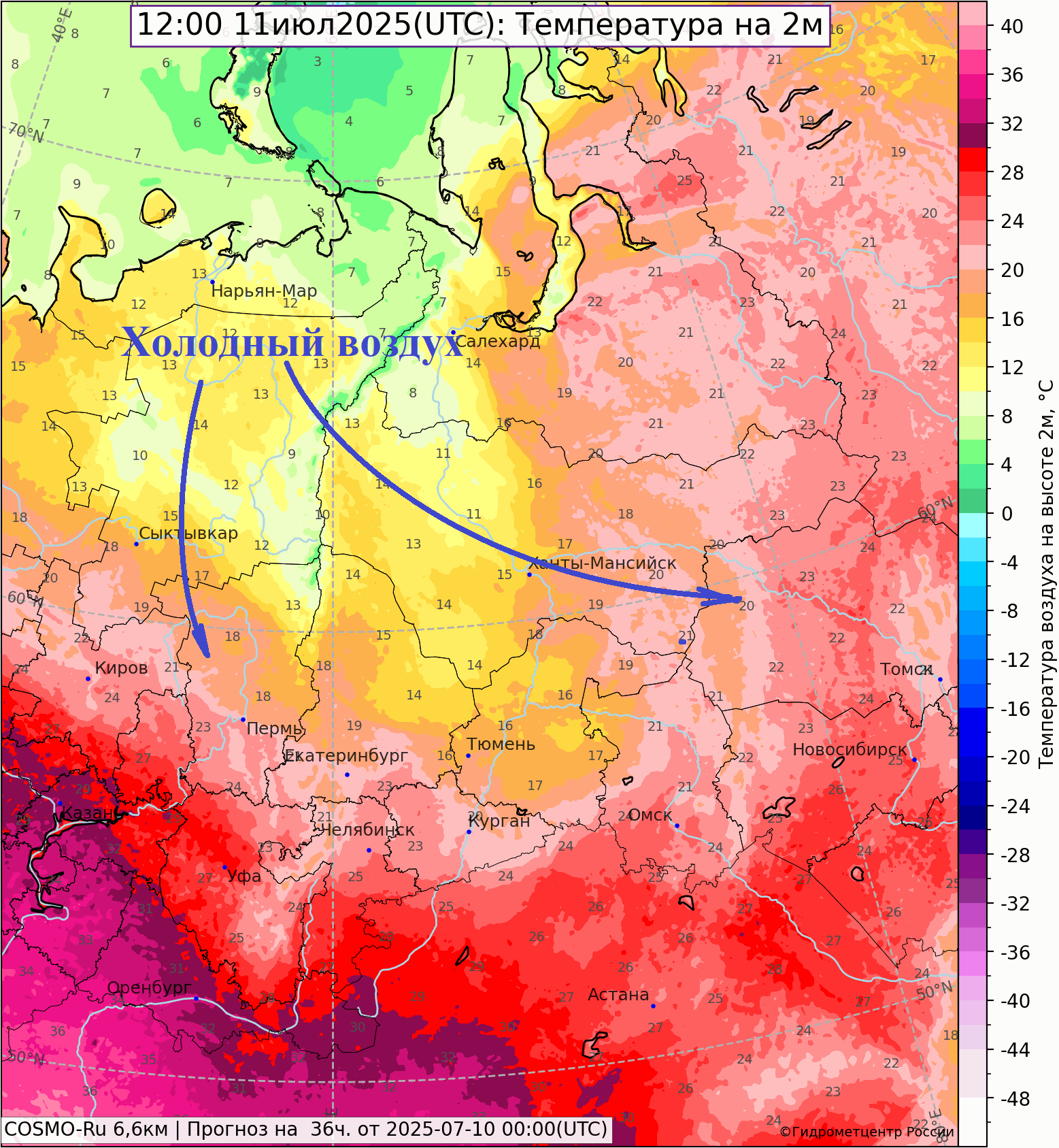 Жаркая погода, установившаяся в центре Европейской территории страны, к нам в ближайшие 5-6 дней не придет. Барьером на ее пути будут устойчивые северо-западные воздушные потоки, которые дуют в тыловой части циклона с центром на севере УФО.