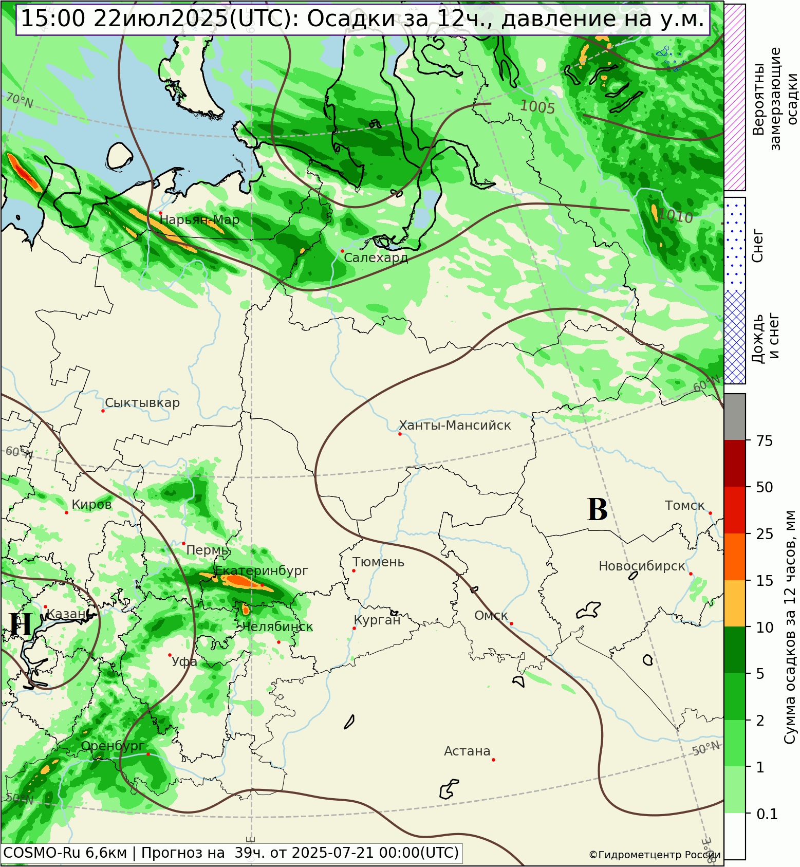 Через Урал перемещается антициклон, 21 июля преимущественно сухо и тепло. 22 июля он займет позицию над Западной Сибирью, освобождая пространство в нашем регионе для теплого влажного воздуха, который (благодаря меняющимся ветрам в тропосфере с северо-западных на западные) направляется в регион с Европейской части России.