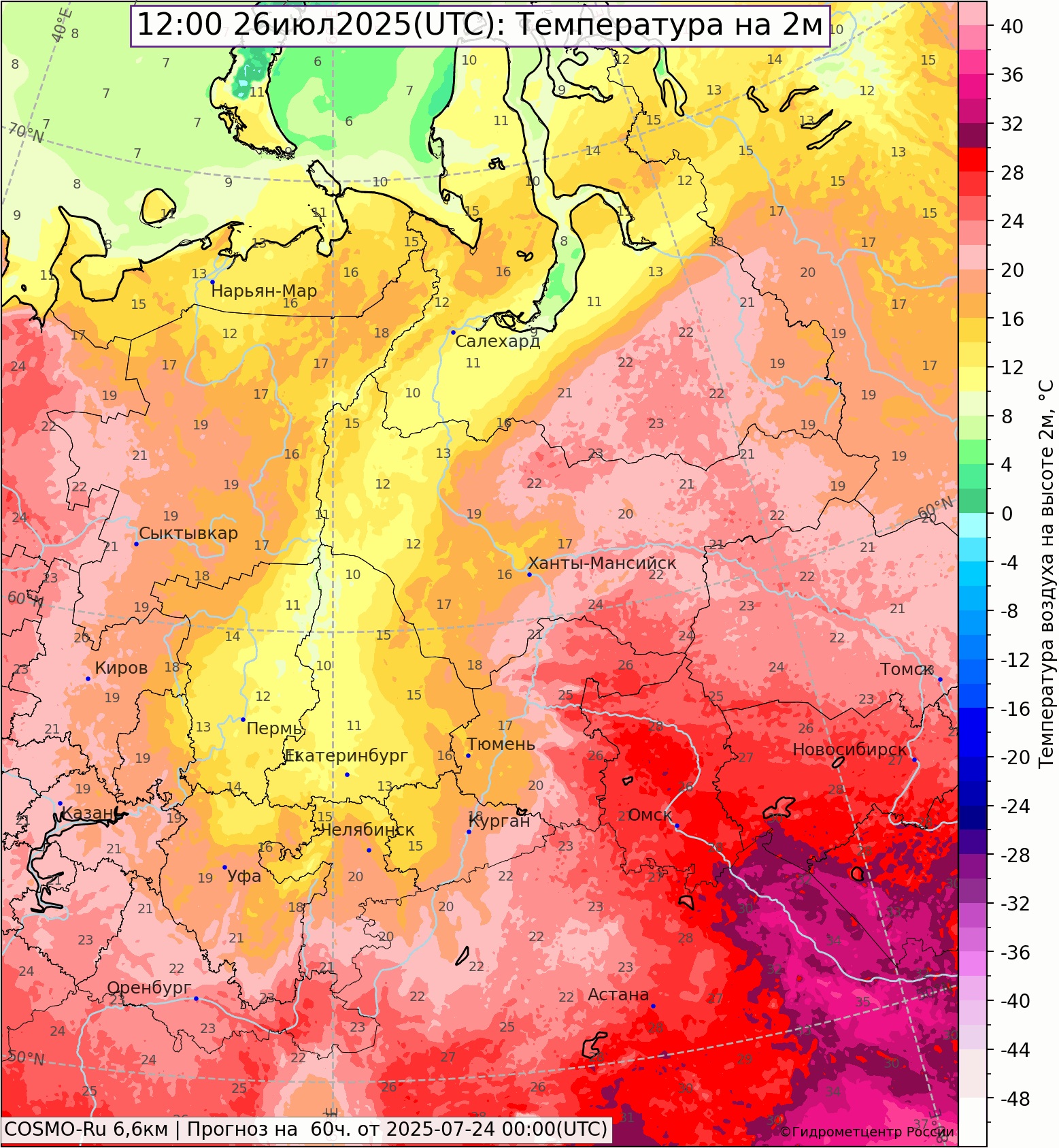 Центр циклона ожидается на Южном Урале и над севером Казахстана. На севере Свердловской области ожидается прекращение осадков к 28 июля, на юге, и крайнем юге период неустойчивой погоды с частыми дождями может затянуться до конца июля.
