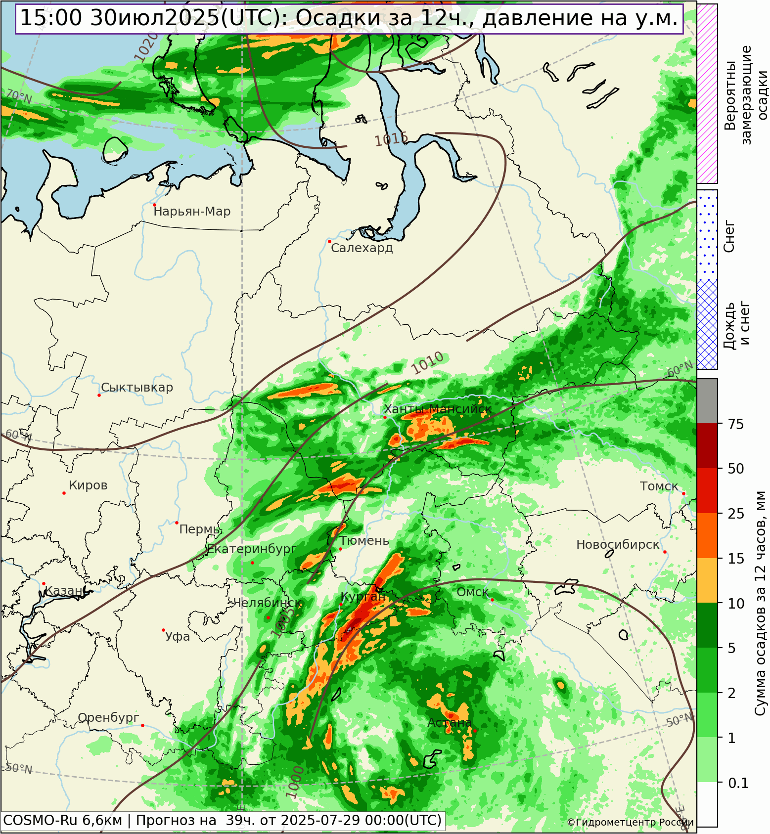 Облачность ненастного циклона все больше закручивается спиралью. Так бывает в поздней стадии развития циклонов. Тем не менее, 30-31 июля дожди еще будут, даже немного поднимутся к северу и прольются, в том числе, на севере Свердловской области, где их почти не было в последние дни. С началом августа циклон, заполняясь, покинет наш регион, сдвинется на восток. 1-2 августа ожидается преимущественно сухая, умеренно теплая погода, днем 20-25°.
