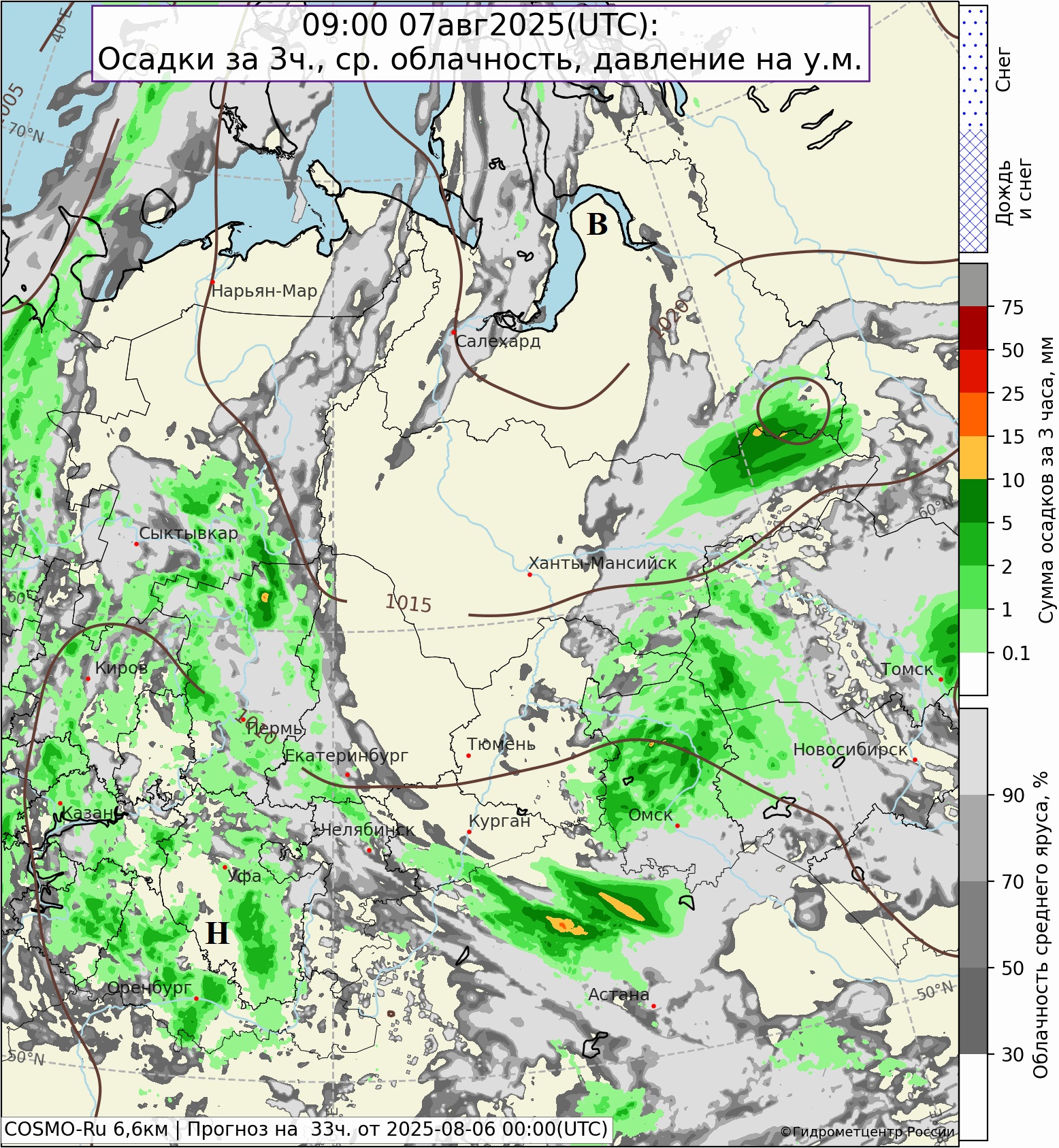 Днем 6 августа и 7 августа характер погоды существенно не изменится, тепло 21-26°, Циклон, обосновавшийся в Волго-Вятском регионе, вызовет кратковременные дожди и грозы не только в Предуралье, но и кое-где на западе и юге Свердловской области.