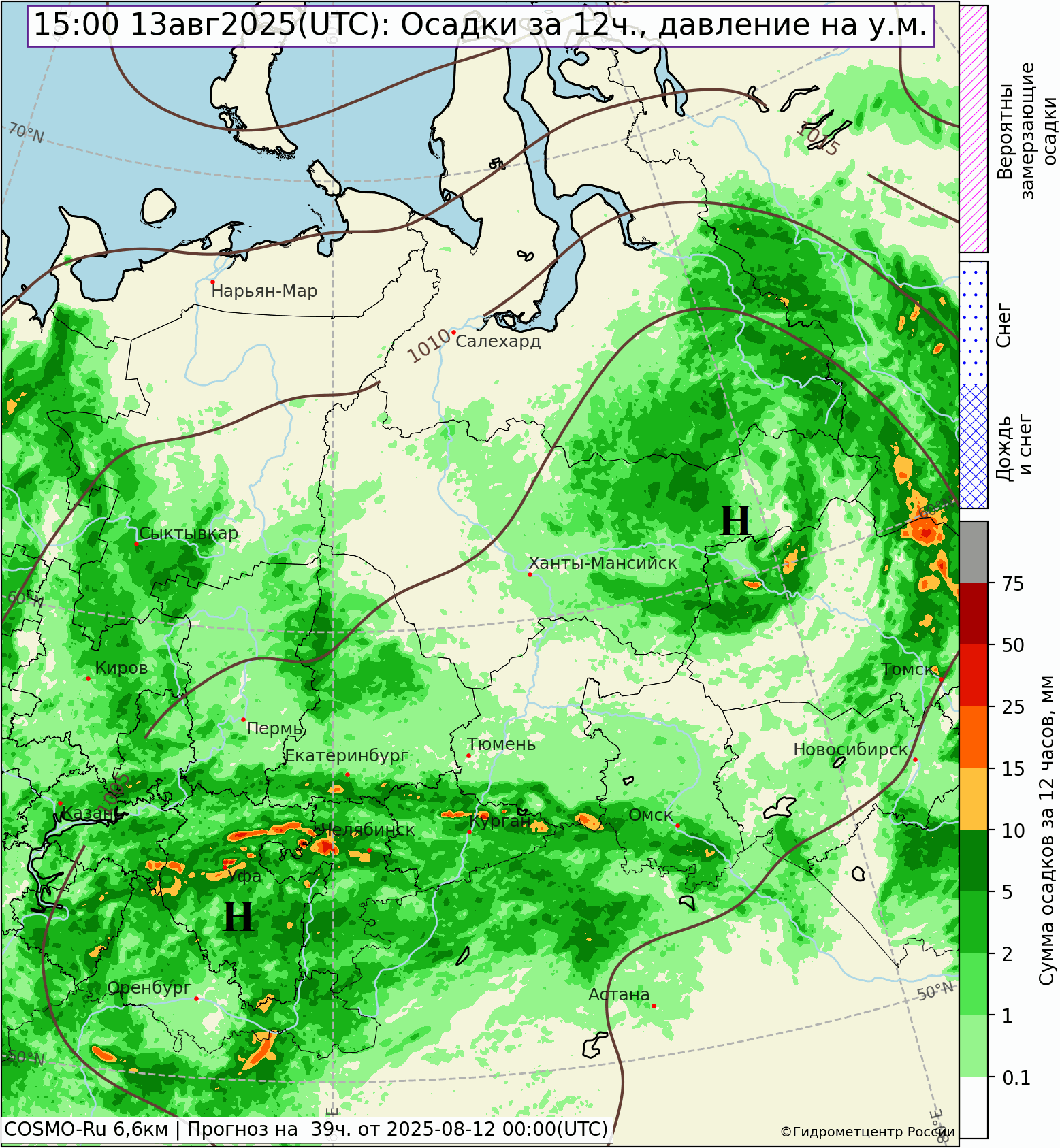 Воздушная масса над Уралом влажная, умеренно теплая. Грозы днем 13 августа отмечаются во многих районах.
