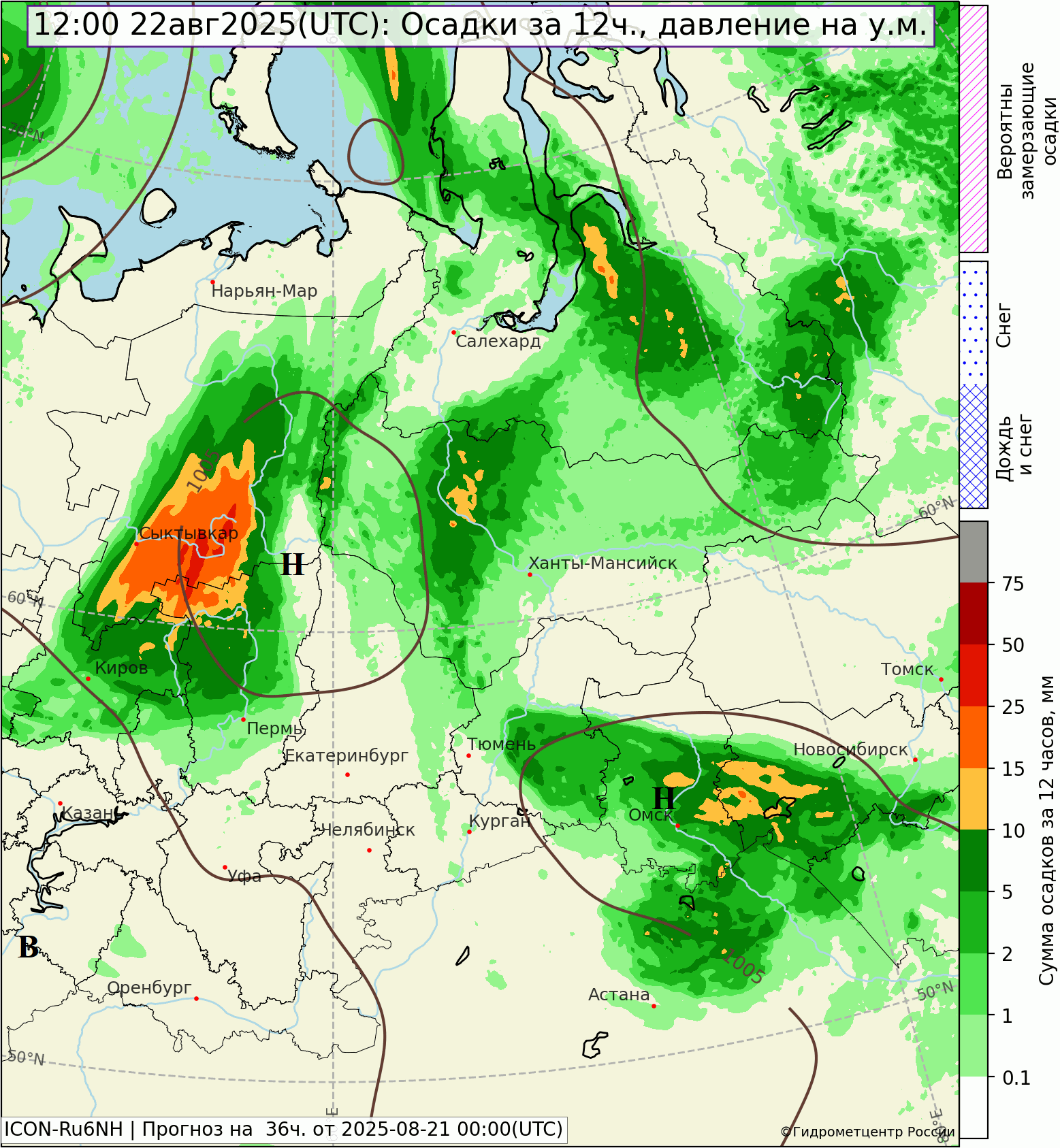 Сильные дожди днем 20 августа пролились в Верхнем Дуброво, Бутке, Липовском, Артемовском, Ревде, ночью 21 августа в Висиме (15-21 мм). В Екатеринбурге к 17 мм дневной порции дождя ночью добавилось еще 11 мм осадков. Температура воздуха днем была от 13,5° в Ревде до 23,4° в Тавде, ночью от 10,3° в Висиме до 14,6° в Ирбите.