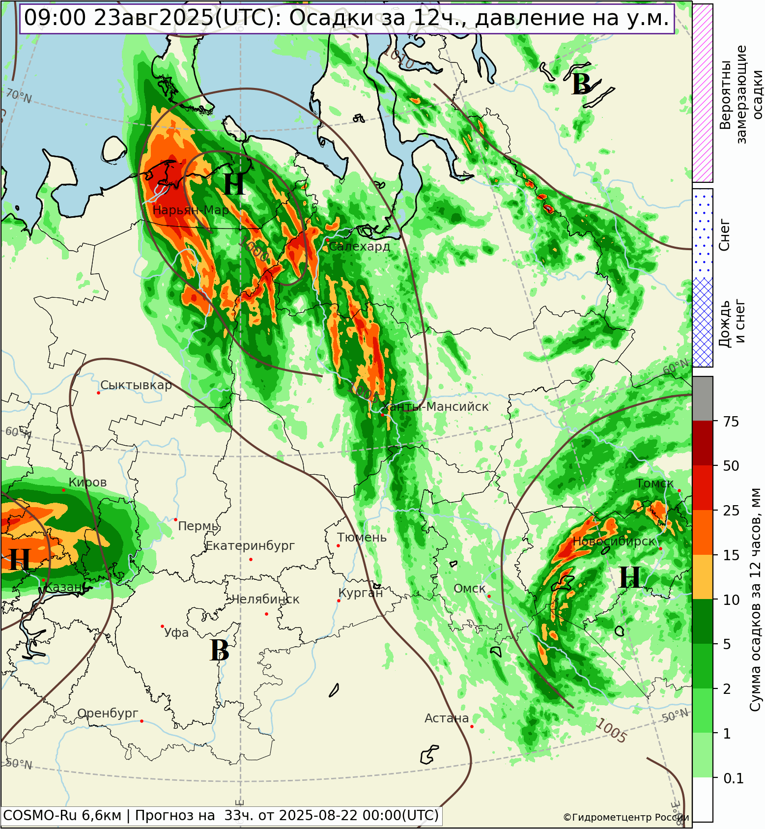 Днем 21 августа небольшой дождь отмечен локально на территории Свердловской области, в Туринске – гроза. Ночью 22 августа было сухо. Температура воздуха днем была 19-24°, в Екатеринбурге 21,1° (осадки с утра 1 мм), ночью от 7° в Красноуфимске до 14,2° в Екатеринбурге и Каменске-Уральском.