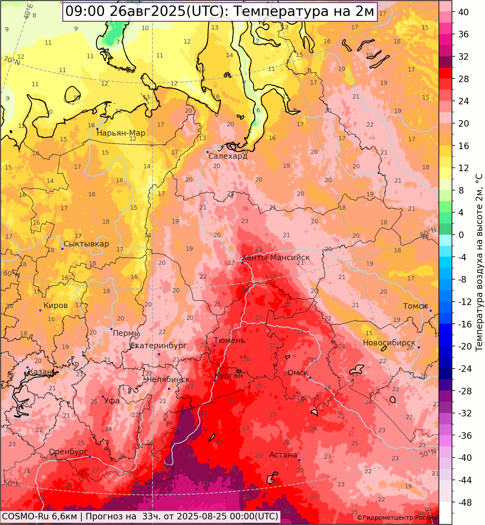25 августа теплый воздух дотянулся до северных районов области, температура днем повысится до 23-28°. Облачность холодного атмосферного фронта над соседним Пермским краем в течение дня распространится постепенно на Свердловскую область. Вечером фронт вплотную подойдет к Уральскому хребту, кое-где в горной зоне области пройдет дождь.