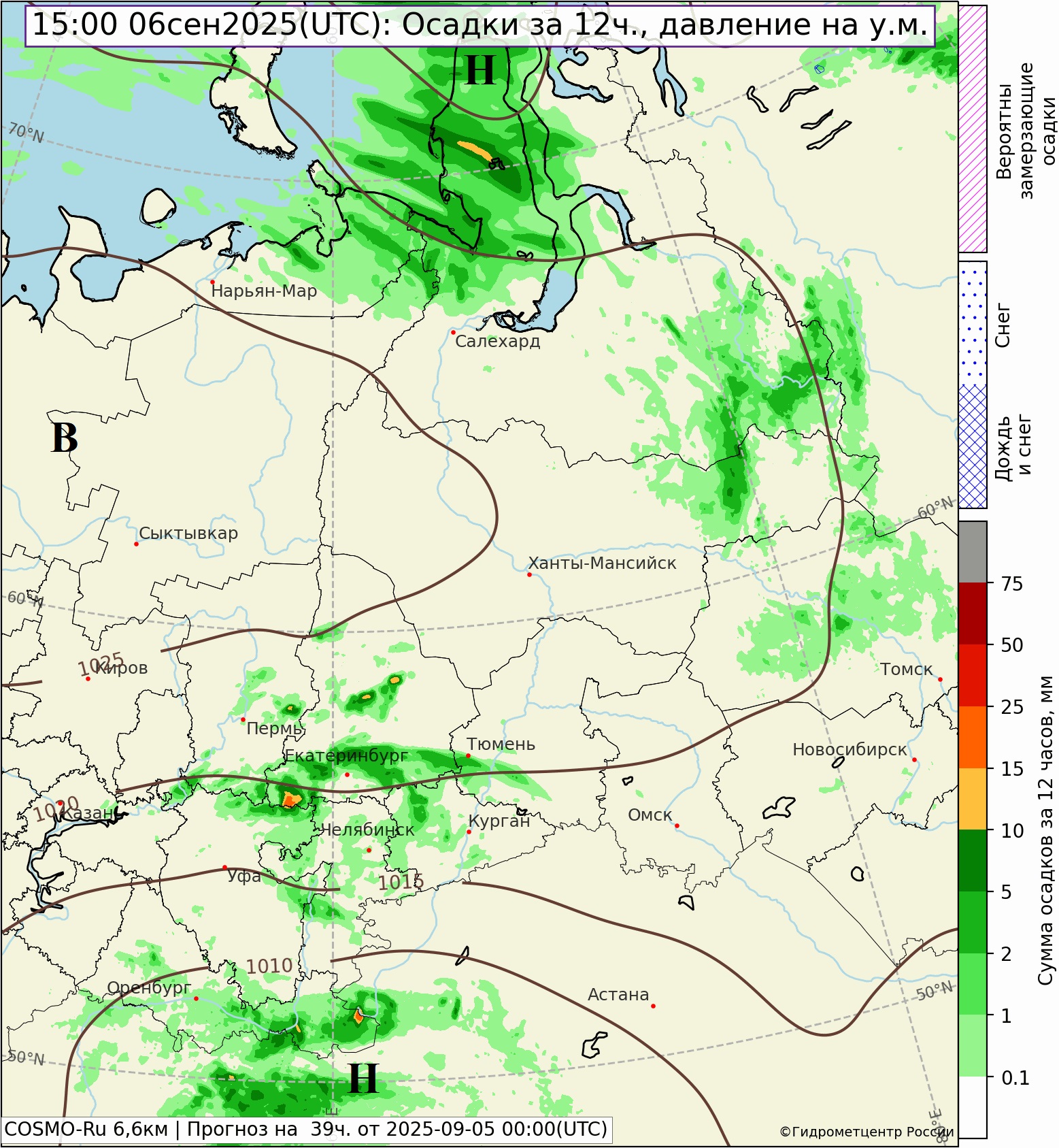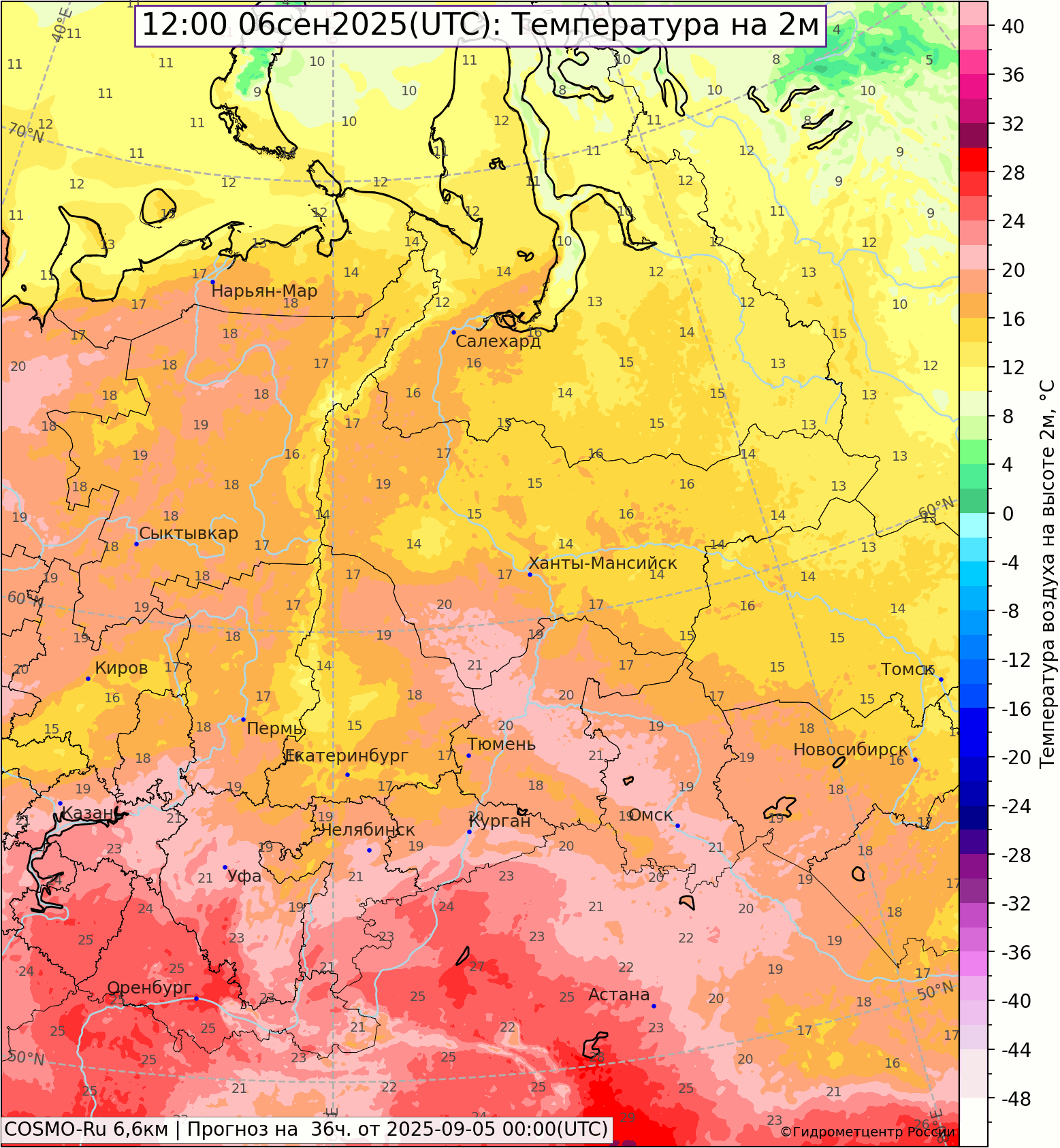 Прогноз осадков и температуры на 6 сентября 2025 г.