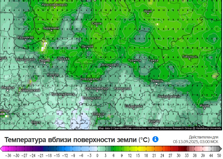 Ночью 13 сентября заморозки -0,-2° ожидаются местами в Свердловской (включая окрестности Екатеринбурга), Челябинской, Курганской областях, ночью 14 сентября сохранятся только в Курганской области, на остальной территории Уральского региона прекратятся.
