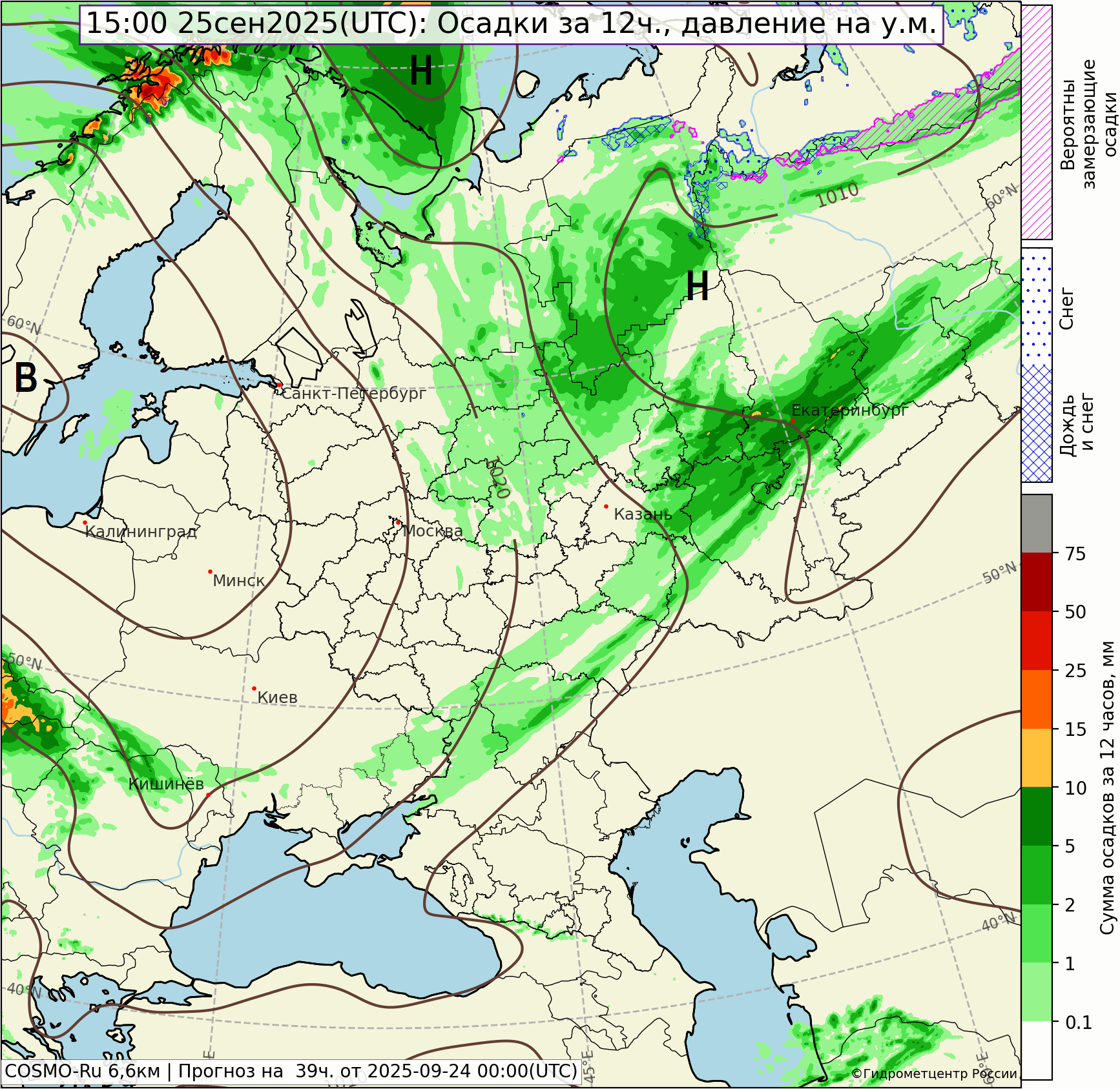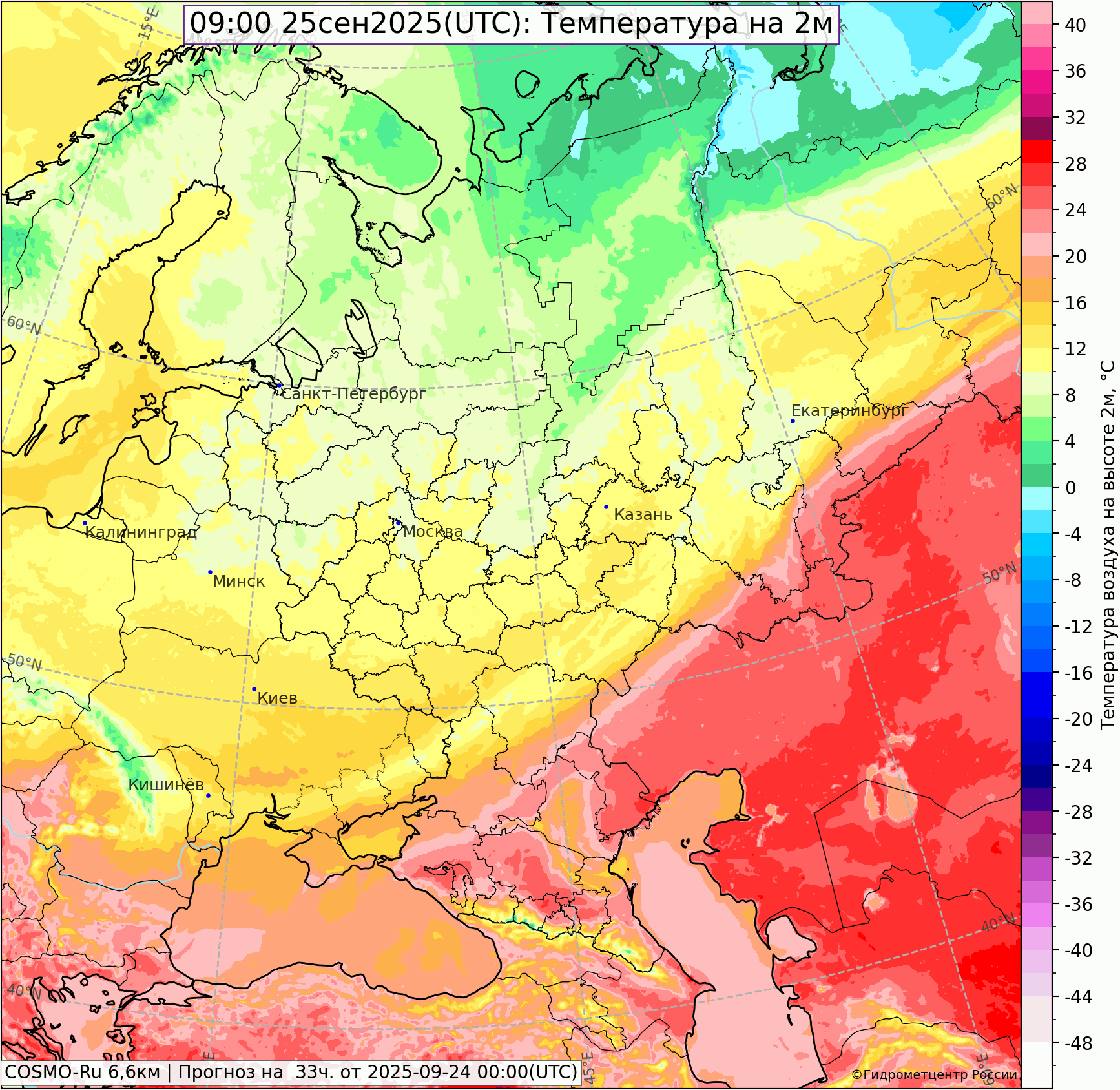 Прогноз осадков и температуры на день 25 сентября 2025 года