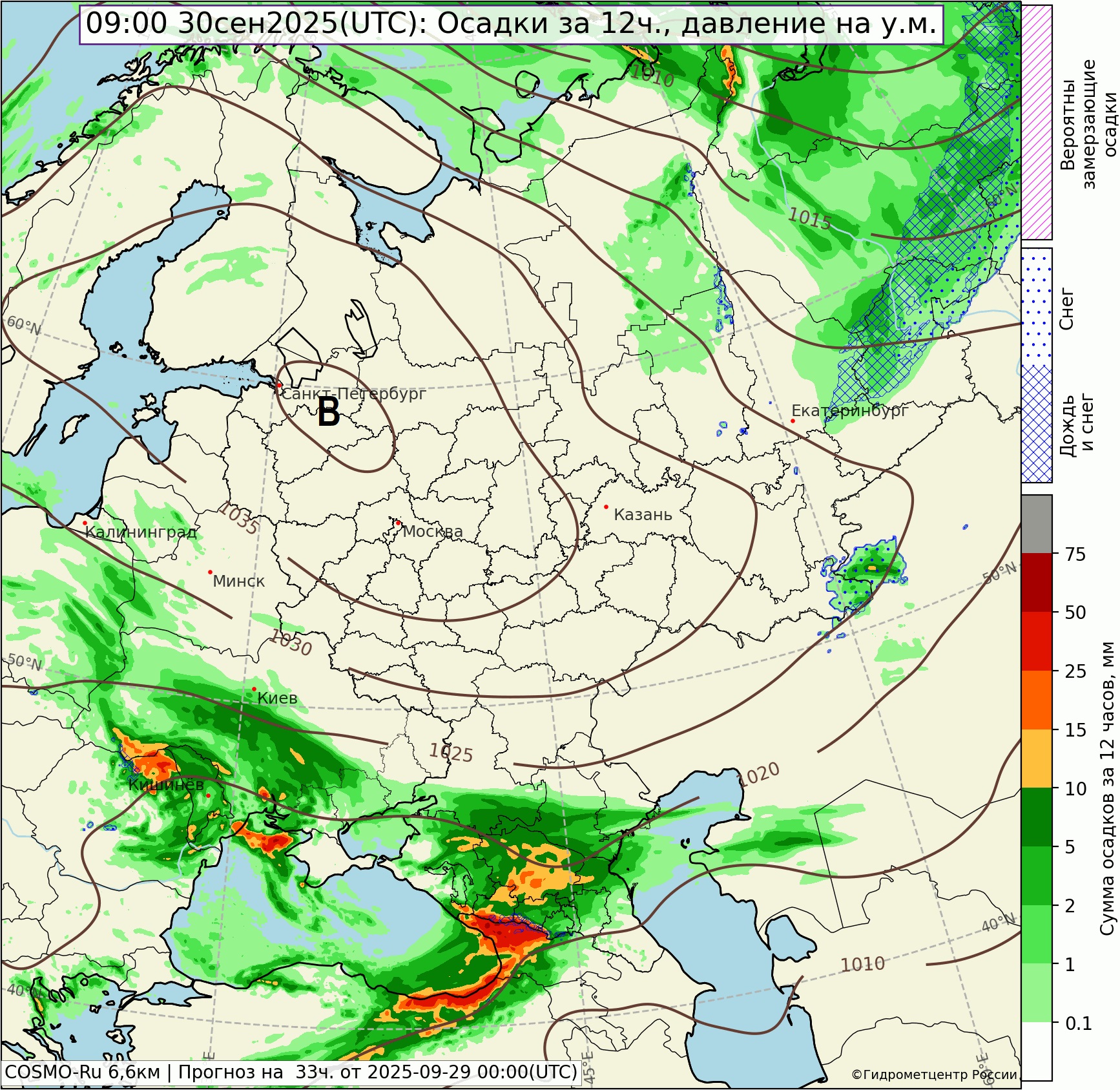 Ночью 29 сентября осадки в виде снега наблюдались в Челябинской области, где к утру во многих районах снег лег слоем 1-8 см. В Свердловской, Курганской, областях, Пермском крае преобладала малооблачная погода при температуре в Свердловской области, Пермском крае -5,-12°, нп Южном Урале -1,-8°, в Екатеринбурге было -5,2°
