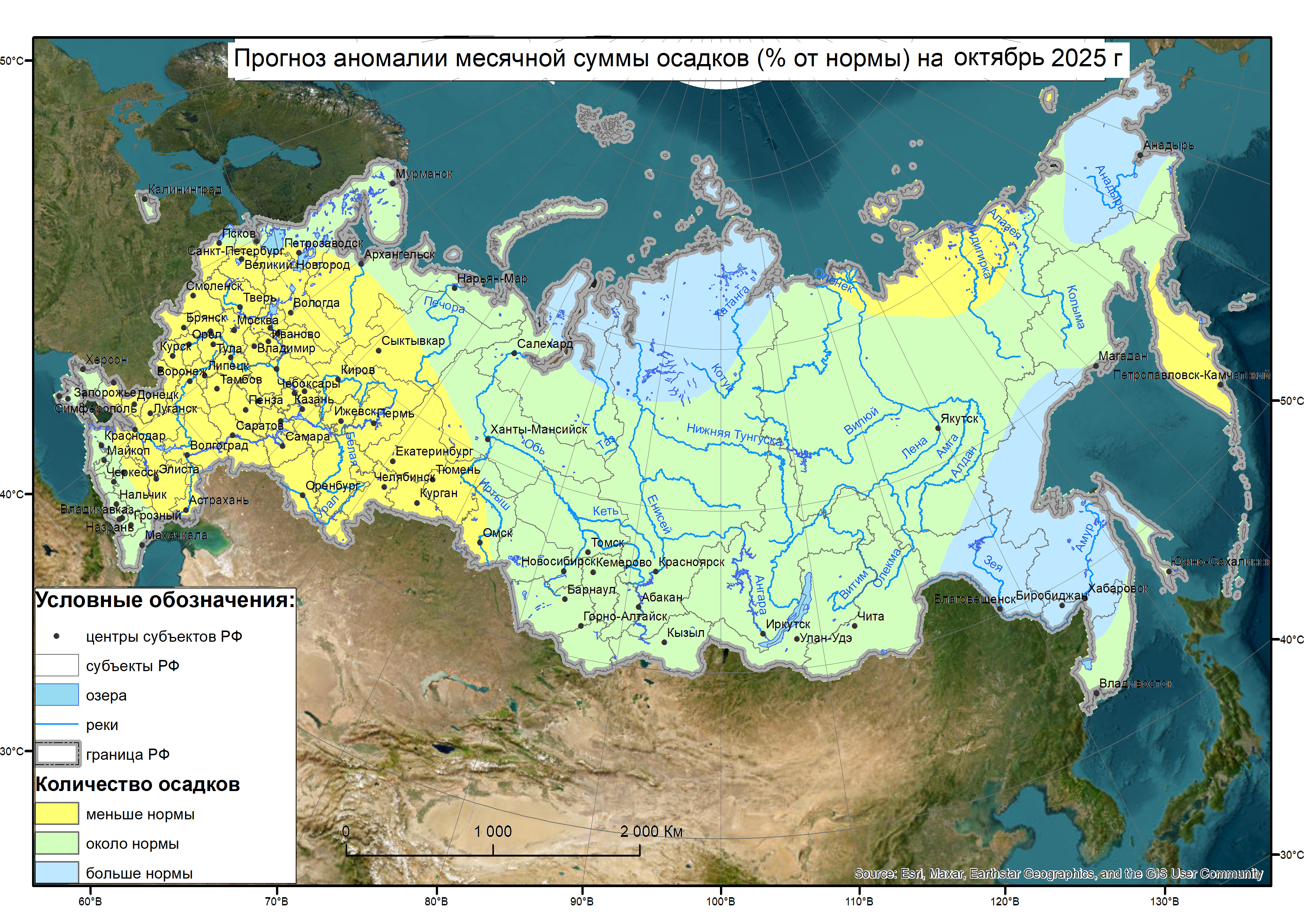 Прогноз Гидрометцентра России на октябрь 2025 года