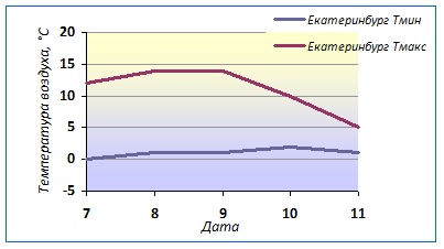 Днем было от +9,4° в Атымье до +14,1° в Сысерти, минувшей ночью от -3,2° в Верхотурье до +5,1° в Краснотурьинске. В Екатеринбурге днем 11,7°, ночью +3,9° (норма).