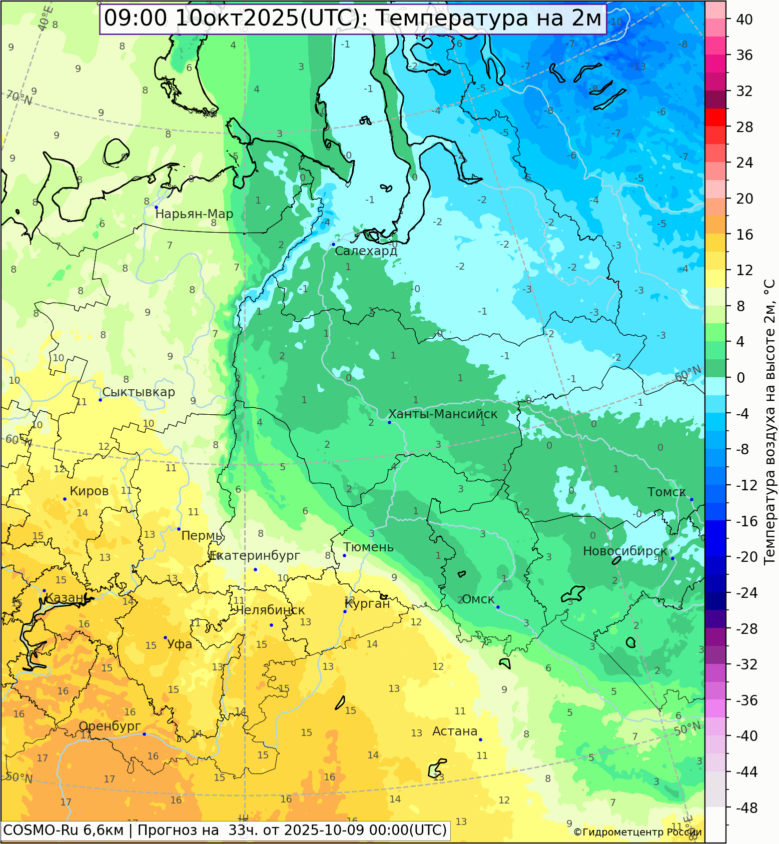10 октября в зону арктического атмосферного фронта попадут северные и восточные районы Свердловской области, где похолодает на 10°, пройдут небольшие осадки (дождь, мокрый снег). На юго-запале области и в Екатеринбурге сохранится теплая погода и холод проникнет сюда ночью и днем 11 октября.