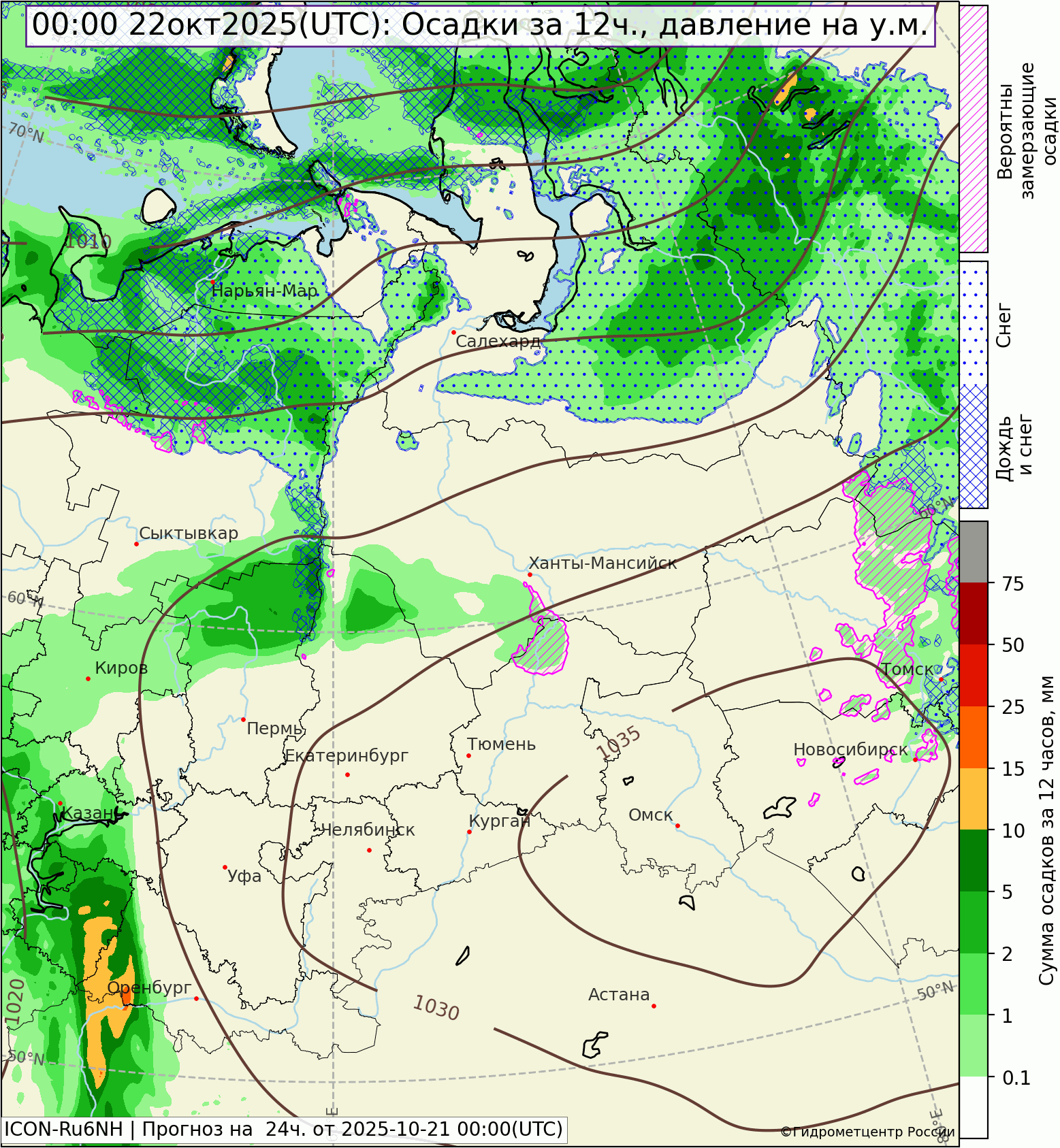 Центр упомянутого циклона, теряя активность и заполняясь, пройдет через Средний Урал 24 октября, вызовет, в основном, небольшие осадки.