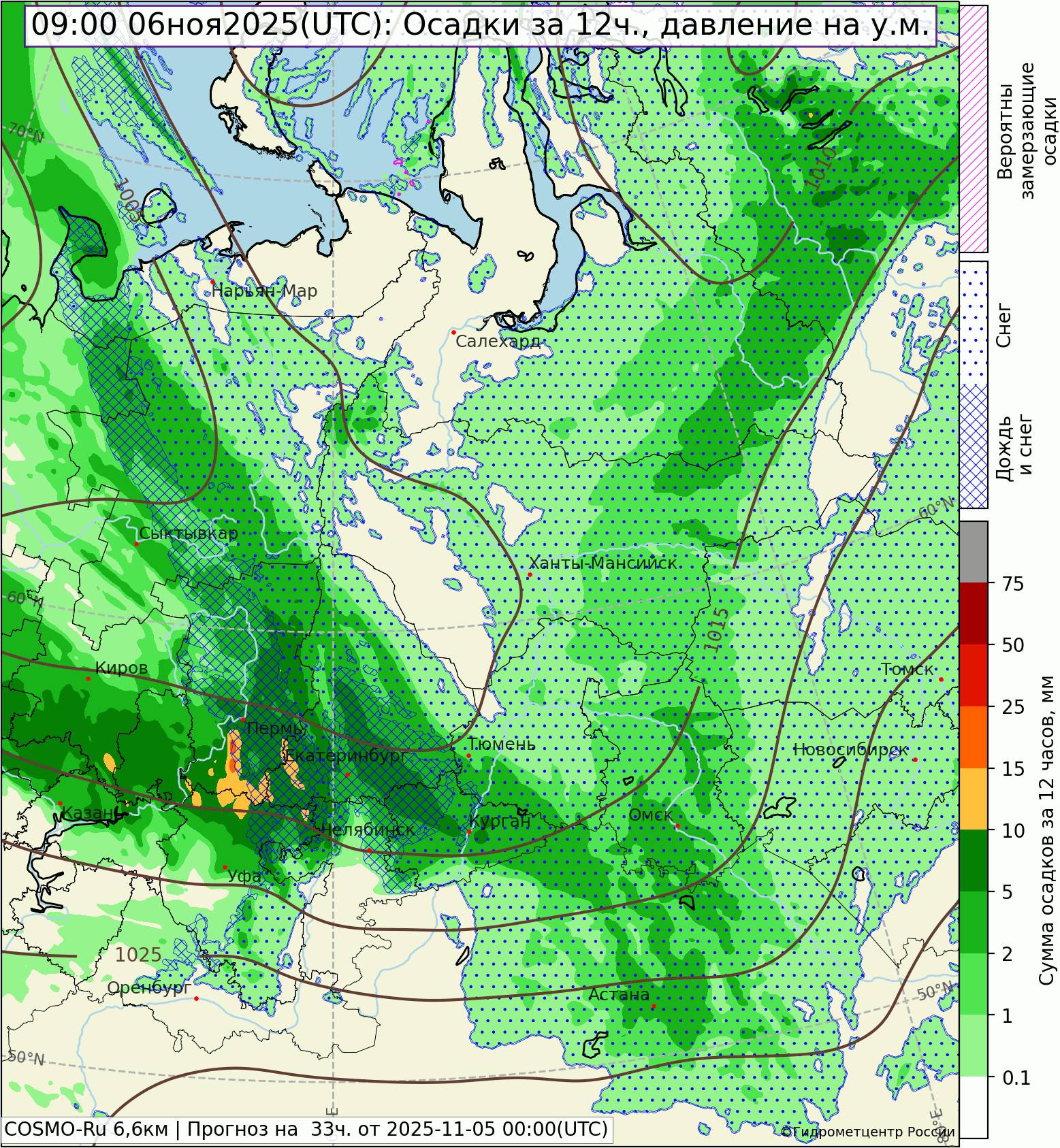 Преобладающие широтные ветры будут приносить теплый воздух Атлантики в ближайшие дни 6-7 ноября. Близко проходящие североатлантические циклоны обусловят частые осадки в виде мокрого снега, на юге с дождем.