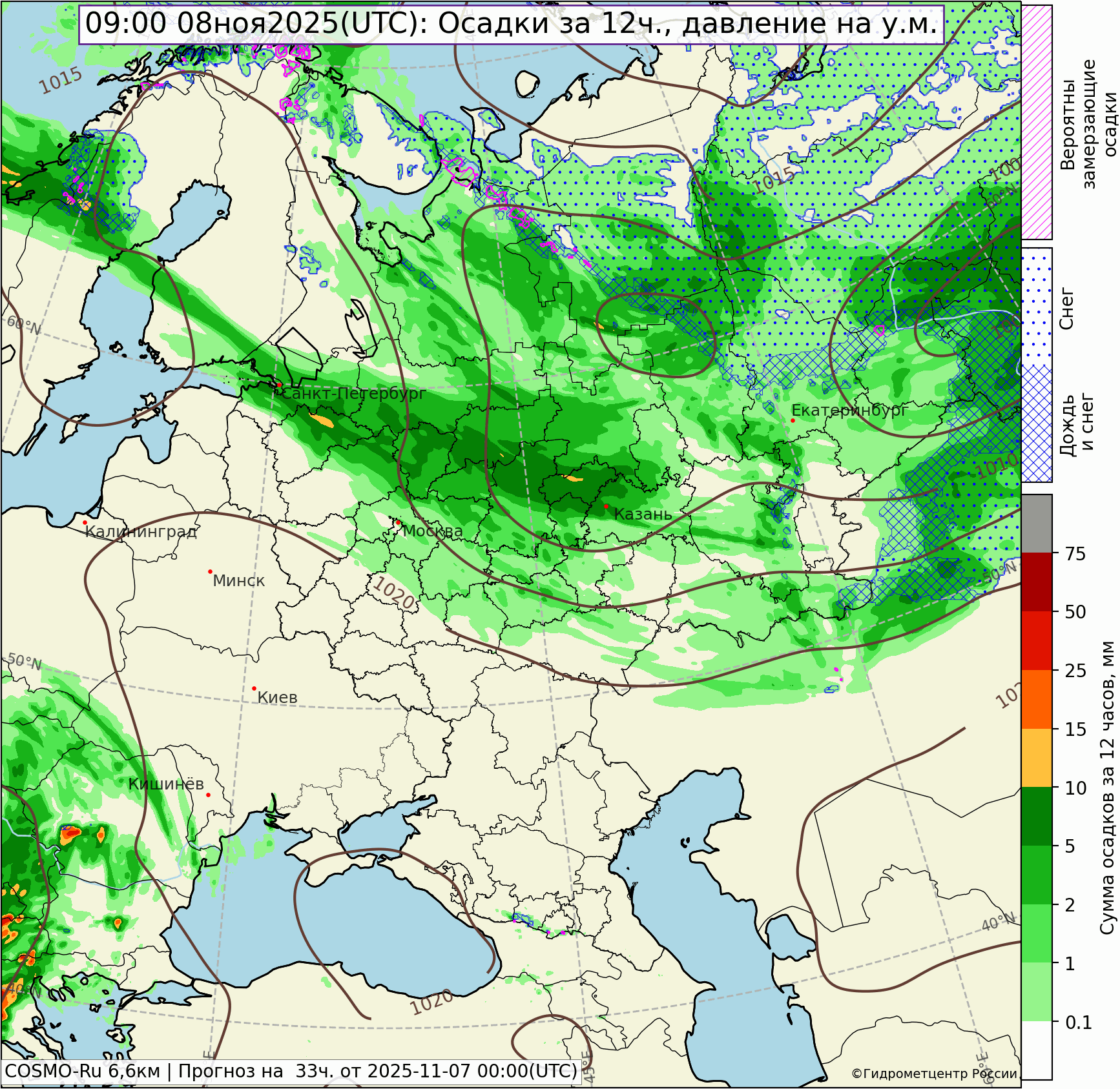 Погода от 08 ч 6 ноября до 08 ч. 7 ноября 2025
