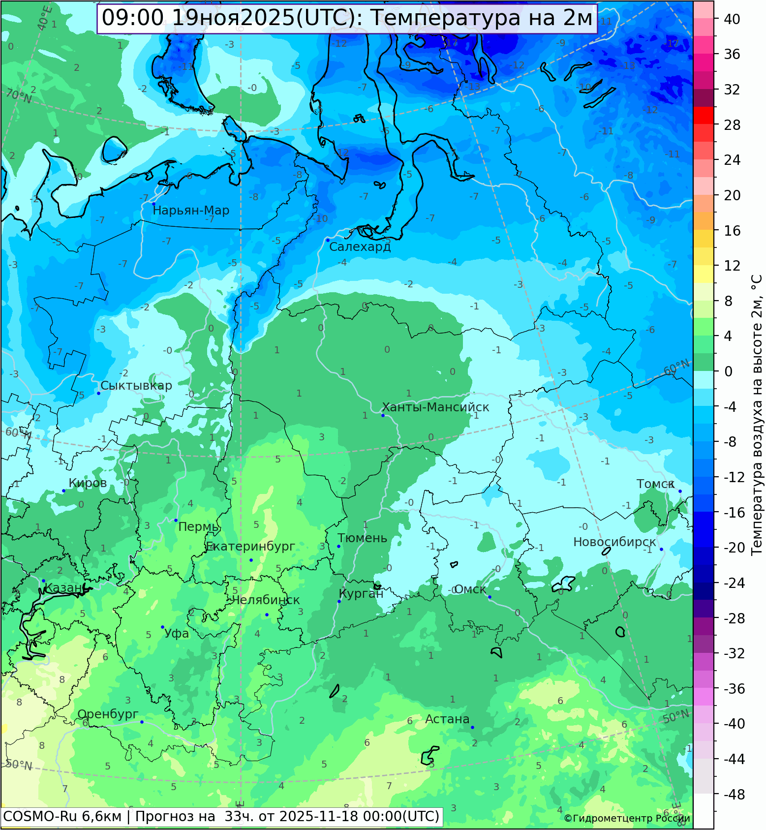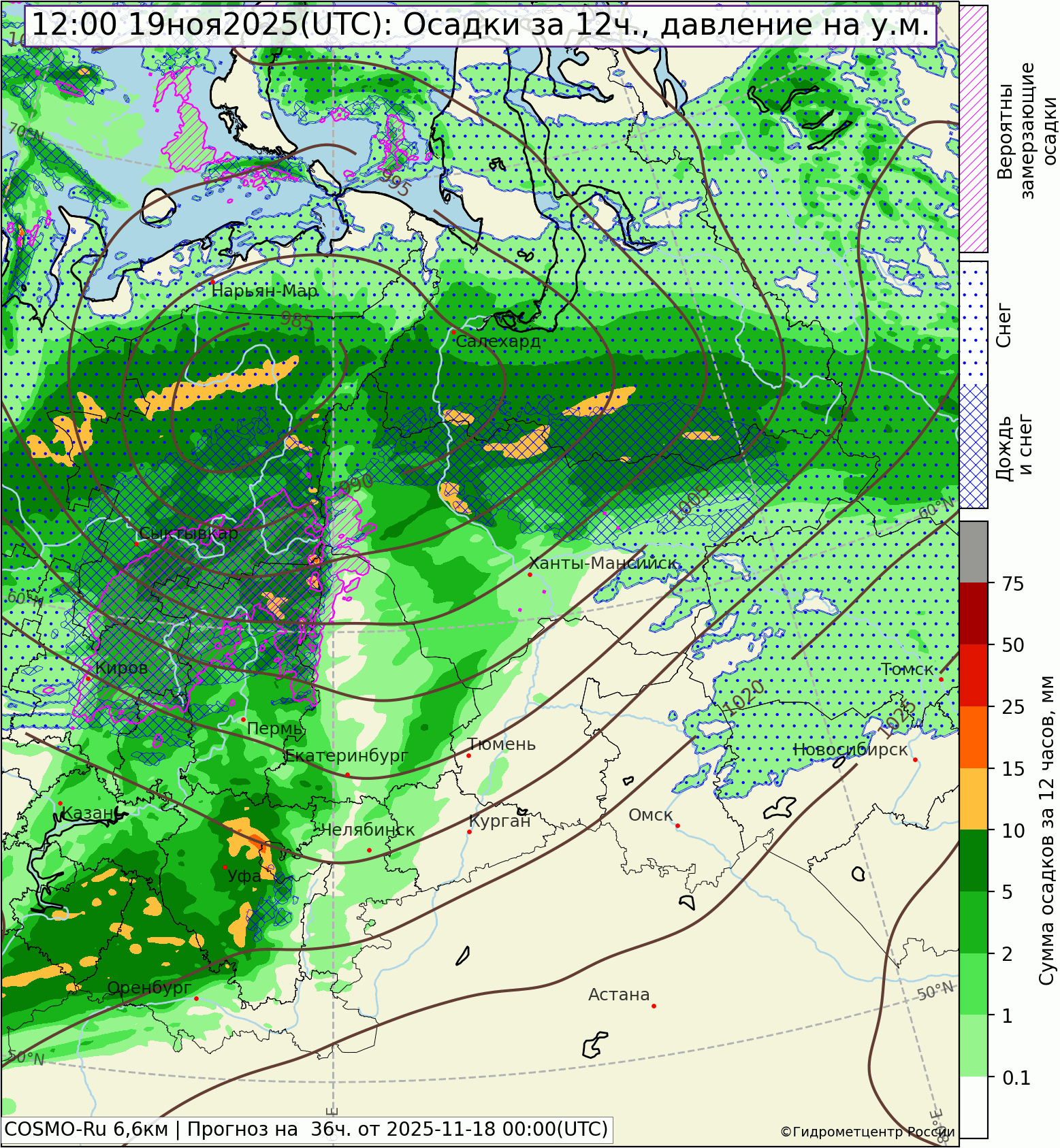 Прогноз осадков и температуры воздуха на день 19 ноября 2025