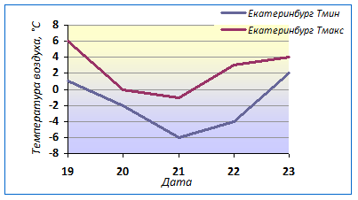 Прогноз температуры воздуха в Екатеринбурге