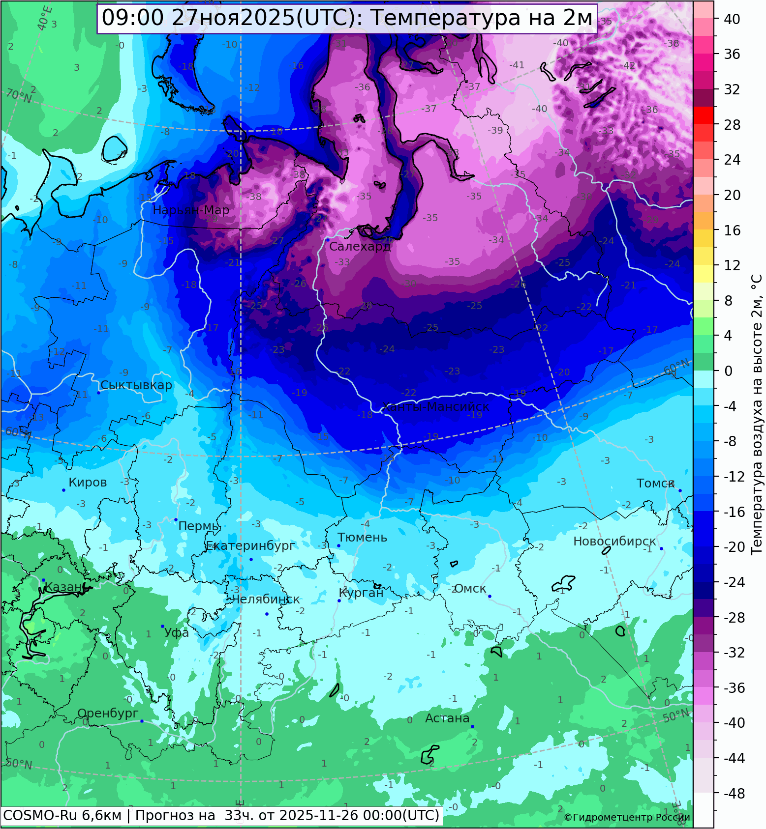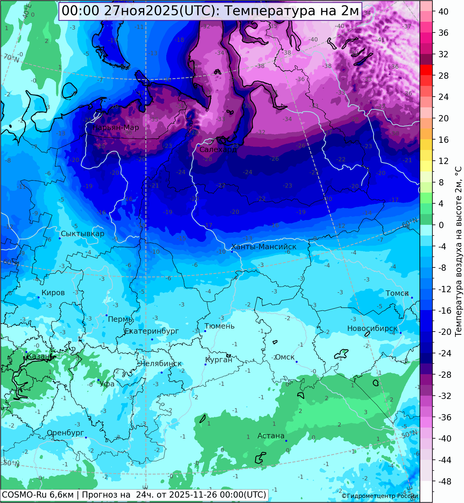 Прошел холодный атмосферный фронт, днем 26 ноября преимущественно 0,-3°. 27 и ночью 28 ноября существенных осадков не ожидается. Подморозит. Оттепель вернется днем 28 ноября в юго-западные районы области, 29 ноября на весь крайний юг. В большинстве районов севера удержатся отрицательные значения температуры. При движении очередного атмосферного фронта днем 28 и ночью 29 ноября выпадут осадки в виде снега и мокрого снега (от небольших до умеренных), вероятен гололед.