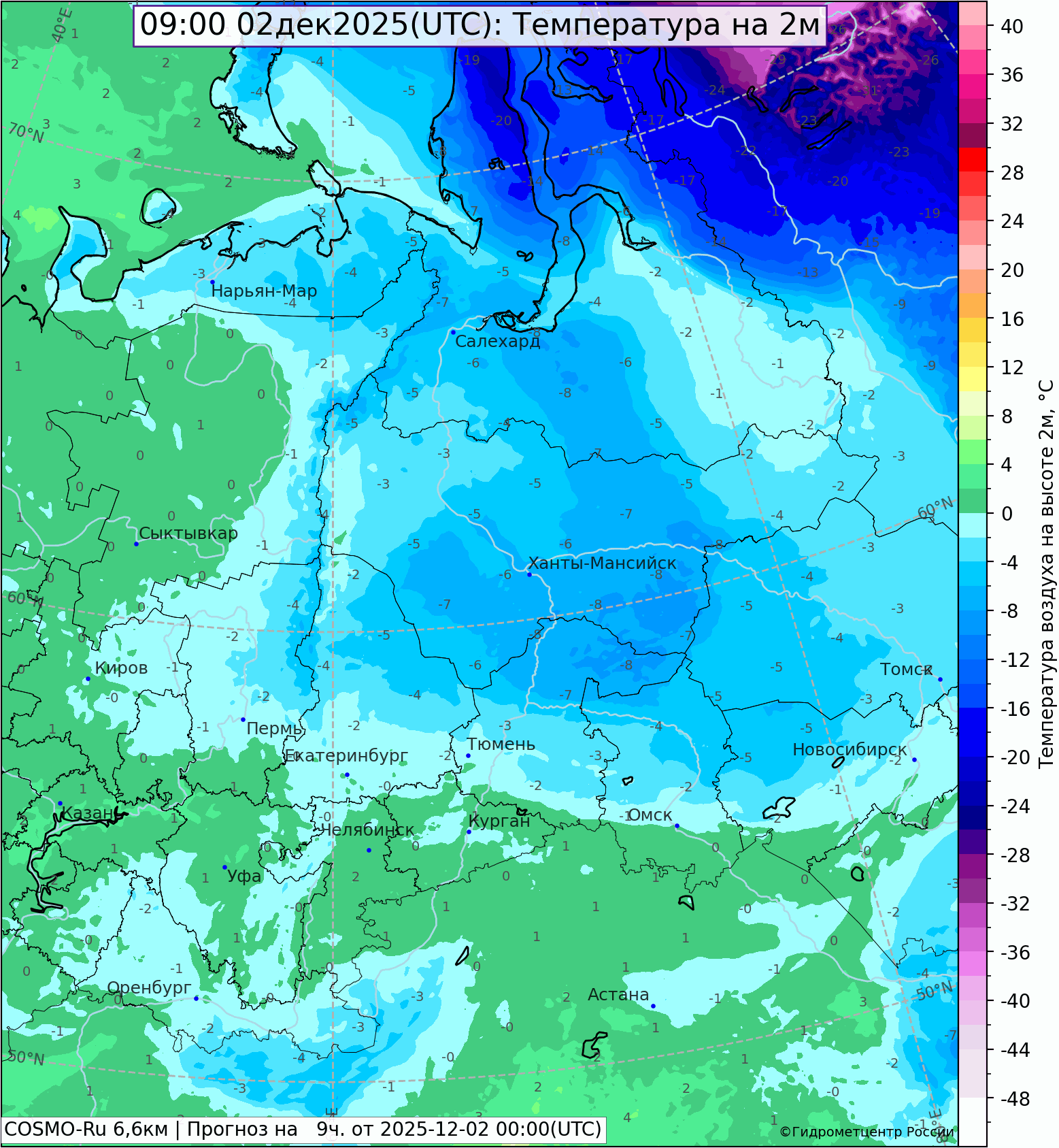 Атмосфера перестраивается. Широтные потоки воздуха сменятся на северо-западные. Очередной североатлантический циклон с арктического побережья в ближайшие дни опустится в центр Сибири, его фронтальная система, проходя через Урал, обусловит снегопады (от небольших до умеренных), укроет землю снежным покровом, что очень кстати перед похолоданием. Морозный континентальный воздух Сибири, теснимый циклоном, охватит его (циклон) с севера. Вначале вновь усилится ослабевший было мороз на севере Уральского ФО, затем холод опустится вдоль восточного склона Уральских гор на территорию Свердловской области. Предполагается, что усиление мороза не будет продолжительным, наиболее низкая температура предполагается в первые дни следующей недели, предварительно ночью 8 и 9 декабря на юге области -12,-17° , на севере -18,-23°.