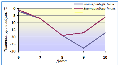 Прогноз температуры воздуха в Екатеринбурге (ночь, днеь)