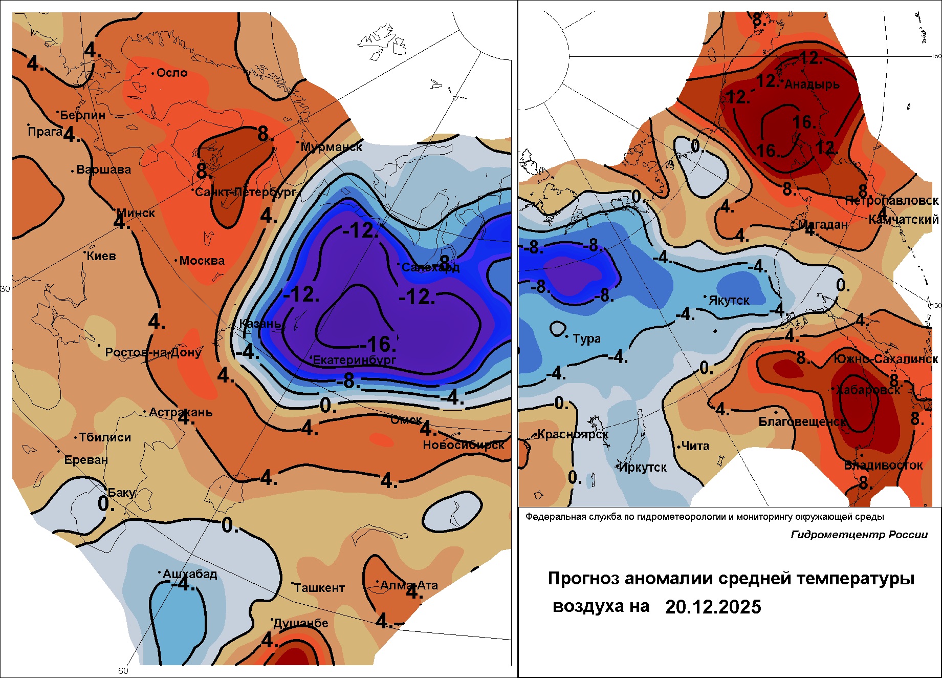 20-21 декабря ожидается мороз: в ночные часы -25,-30°, на севере и востоке -35°, на крайнем севере -37,-42°, днем 20 декабря -20,-27°, на крайнем севере -37°, днем 21 декабря смягчение холода на 10°.