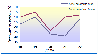 За сутки выпало осадков 0,2-3 мм. Температура воздуха днем была от -13,5°(Каменск-Уральский) до -16,8° (Кытлым), ночью самым теплым был Красноуфимск -15,3°, в большинстве районов -16,-22°, в центре и на востоке -25,-28°, наиболее низкая температура: Туринск, Таборы, Тавда, Бутка, Тугулым -28,-28,5°. Екатеринбург днем -14,8°, ночью -16,5°, осадков 1,7 мм.