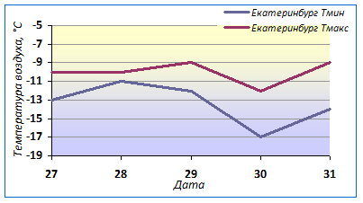 Прогноз температуры в Екатеринбурге (ночь, день)