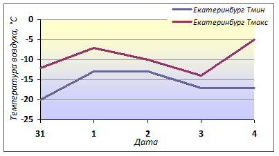 Прогноз температуры в Екатеринбурге (ночь, день)