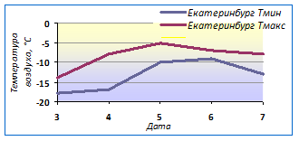 Екатеринбург: днем -10,2, ночью -11,8°.