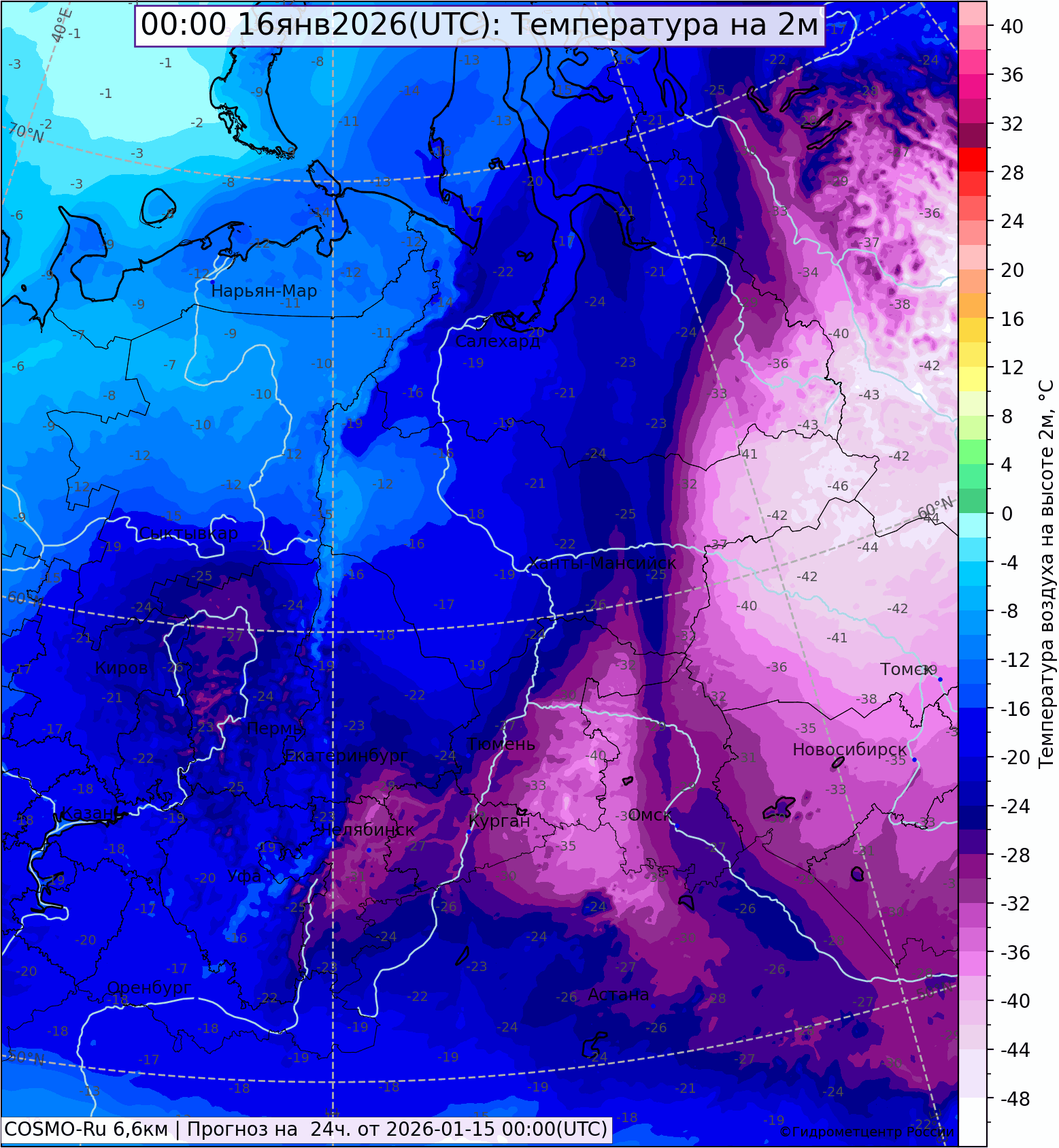 В ближайшие сутки 16 января на значительной территории Свердловской области сохранится аномально холодная погода при температуре воздуха на 7-9° ниже нормы.