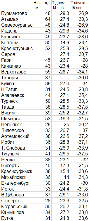 Погода в Свердловской области с 08 ч.14 января до 08 ч. 15 января 2026 г.