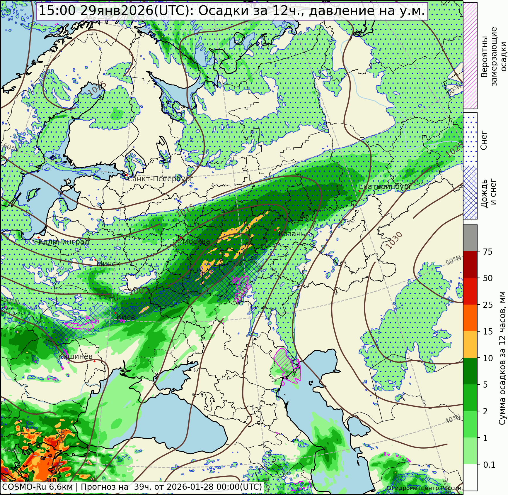 Атмосферный фронт протянулся через всю территорию ЕТ России – от северного циклона к ложбине, выходящей с юга зарубежной Европы. Фронт, отделяющий холодный северный воздух от тепла, поднявшегося с южный морей на европейский юг России, принес уже сильные снегопады в центр ЕТ России. В ближайшие дни он будет ориентирован с запада на восток и, оказавшись в широтном потоке воздуха, на несколько дней обеспечит выпадение осадков на Среднем Урале. К концу текущей недели высота снежного покрова в Свердловской области прирастет согласно расчетам на 12-25 см, на крайнем севере и крайнем юге области на 4-9 см. Еще больше снега выпадет в Предуралье, а вот на Южном Урале осадков будет мало.
