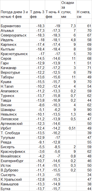 Погода в Свердловской области с 08 ч. 3 февраля до 08 ч. 4 февраля 2026 г.