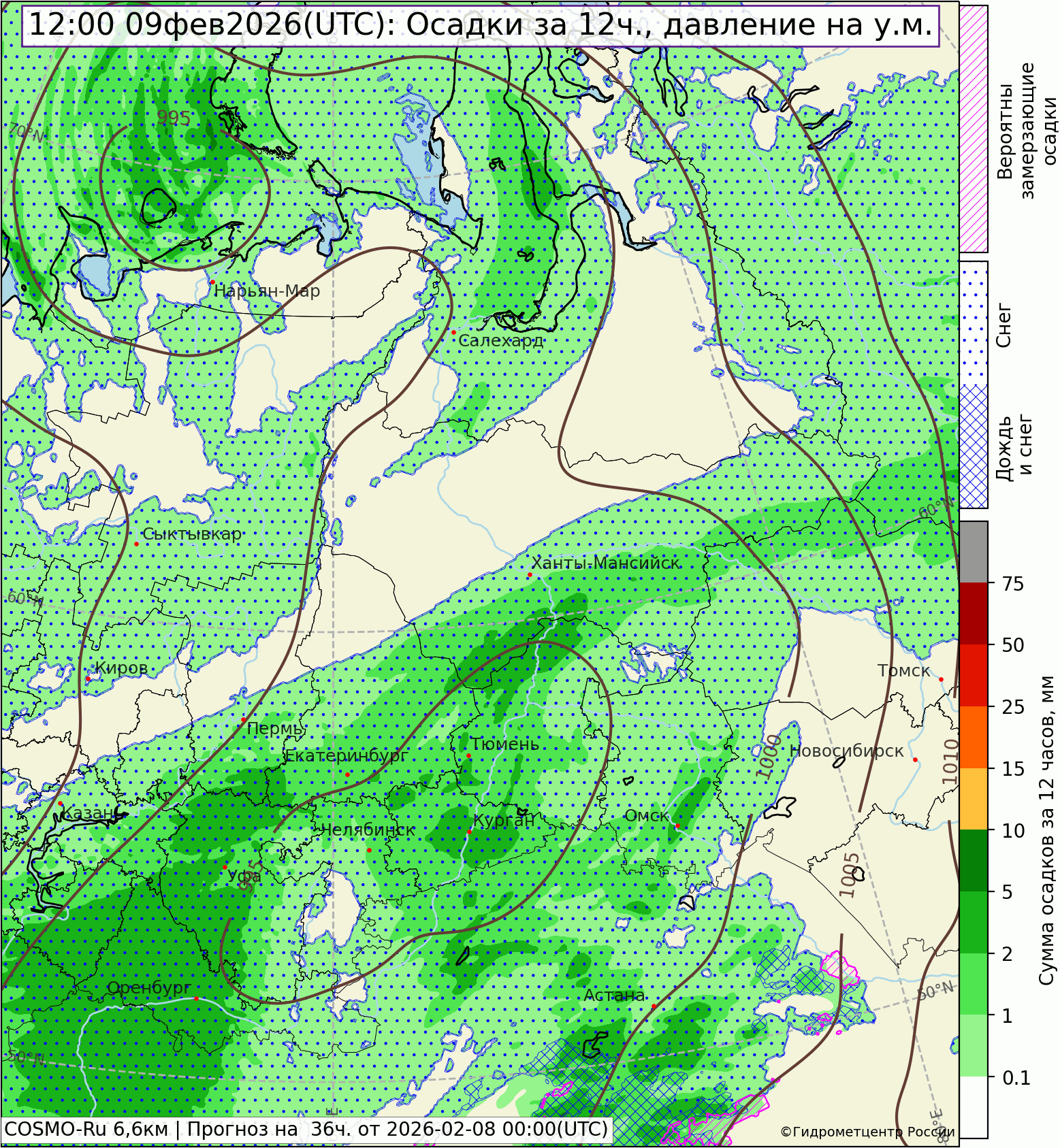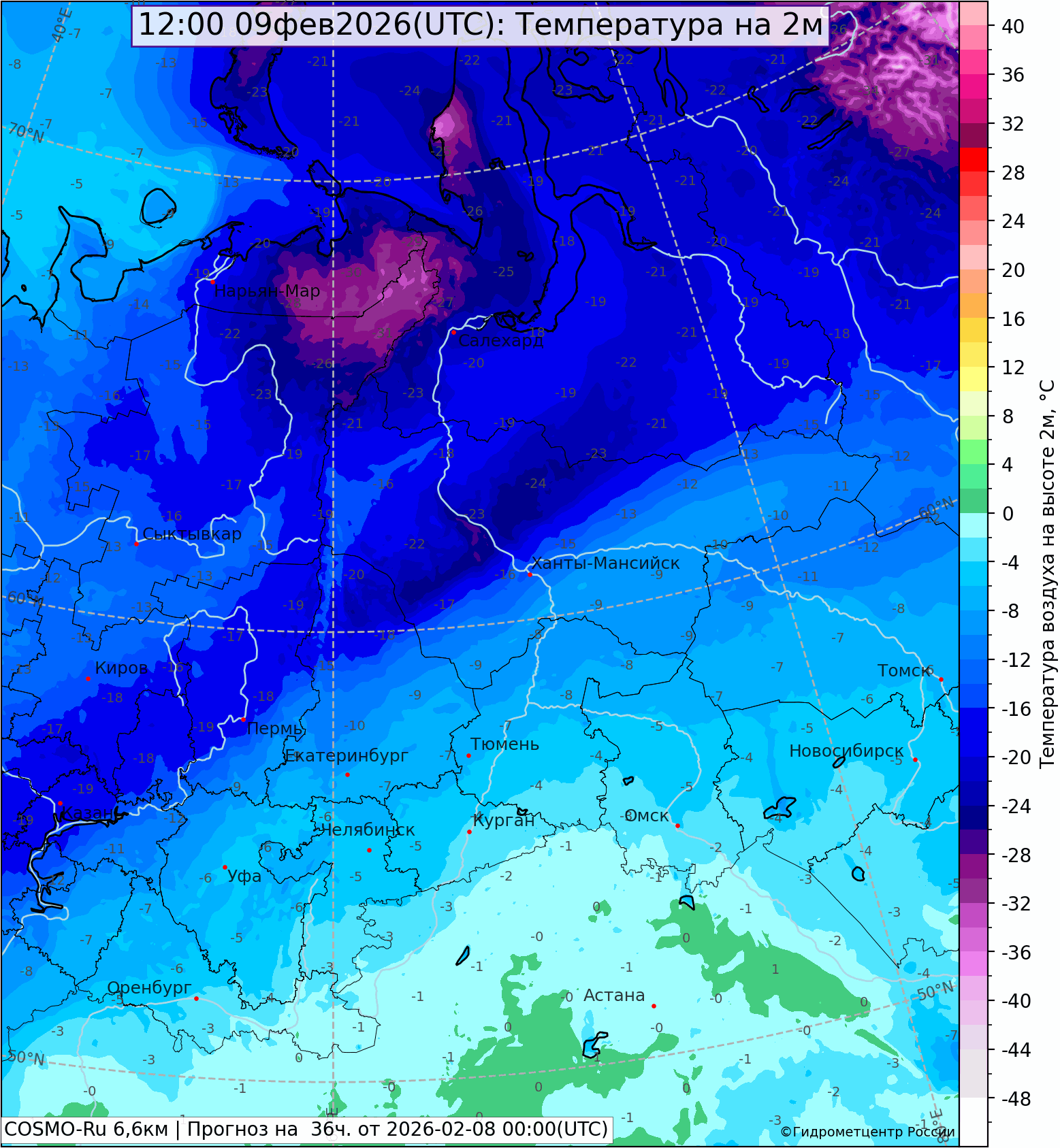 Погода в Свердловской области с 08 ч 7 февраля до 08 ч. 8 февраля 2026 г.