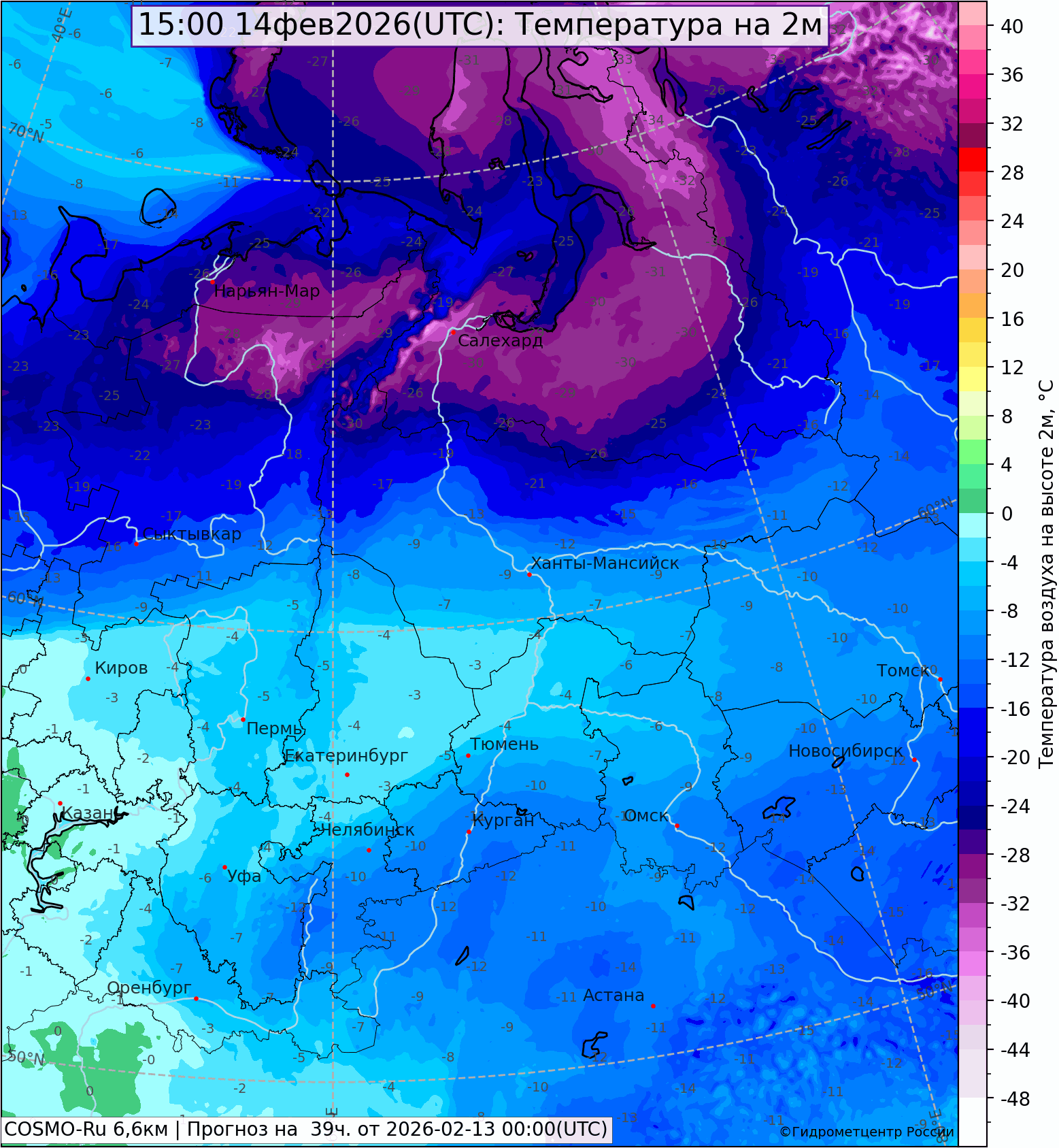Погода в Свердловской области с 08 ч. 12 февраля до 08 ч. 13 февраля 2026 г.