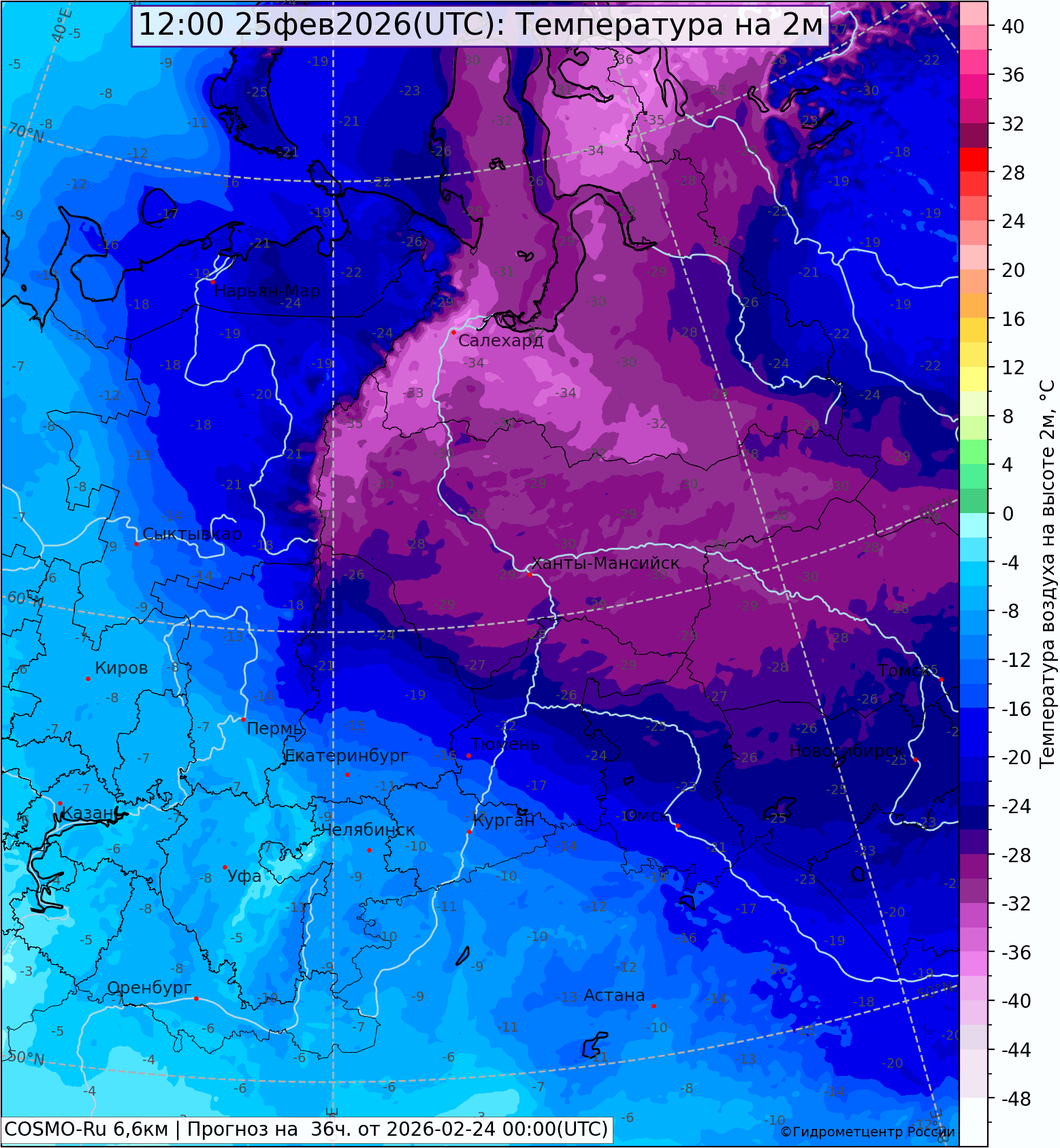 Погода в Свердловской области с 08 ч. 23 февраля до 08 ч. 24 февраля 2026 г.