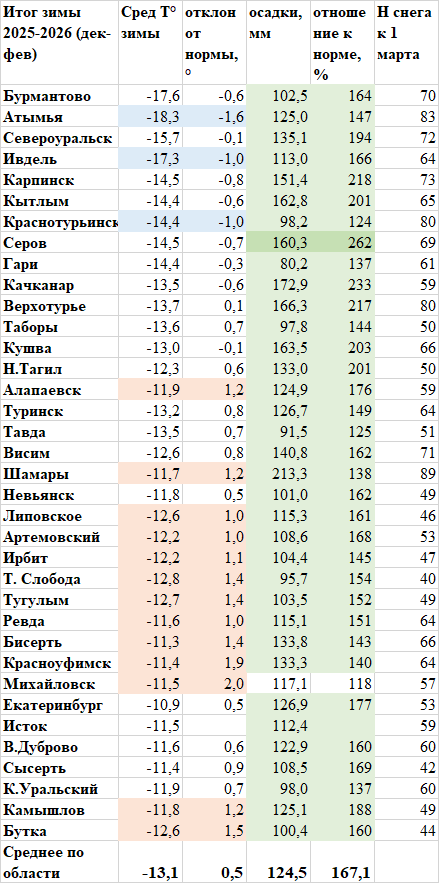 Итоги зимы 2025-2026 года в Свердловской области (декабрь-февраль)