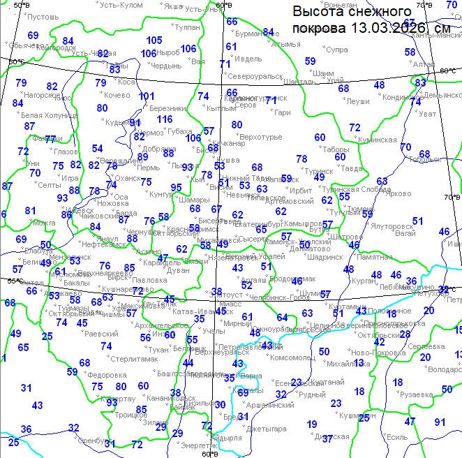 Погода в Свердловской области с 08 ч.12 марта до 08 ч. 13 марта 2026 г.