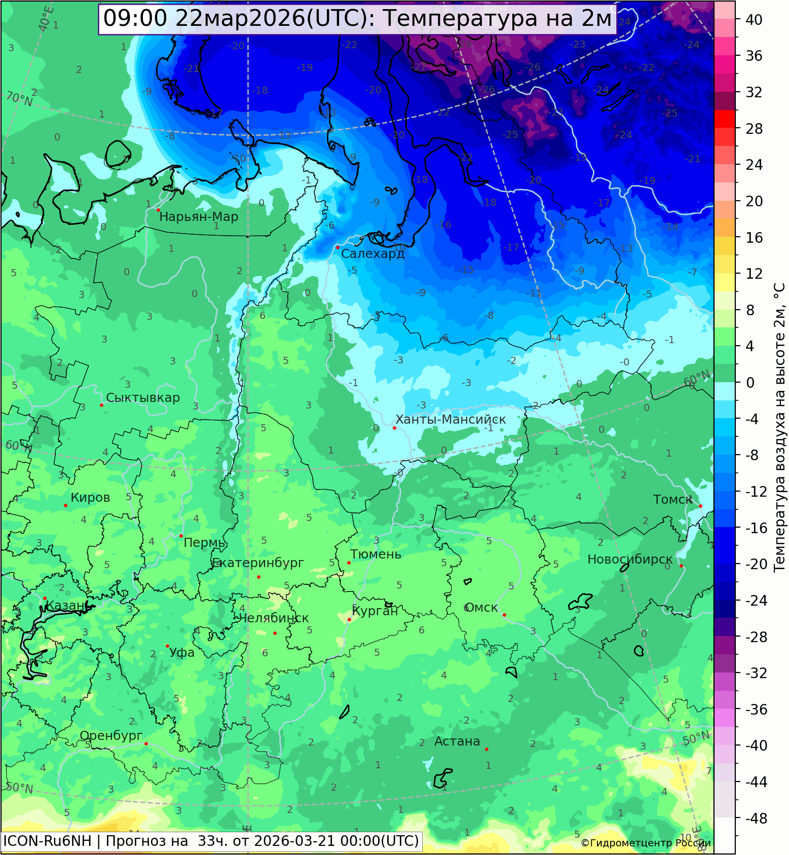 Ночью 21 марта было -3,+2°, в Гарях -3,4°, в Екатеринбурге, Алапаевске, Краснотурьинске +1,8°. На крайнем севере области отмечался слабый снег с дождем.