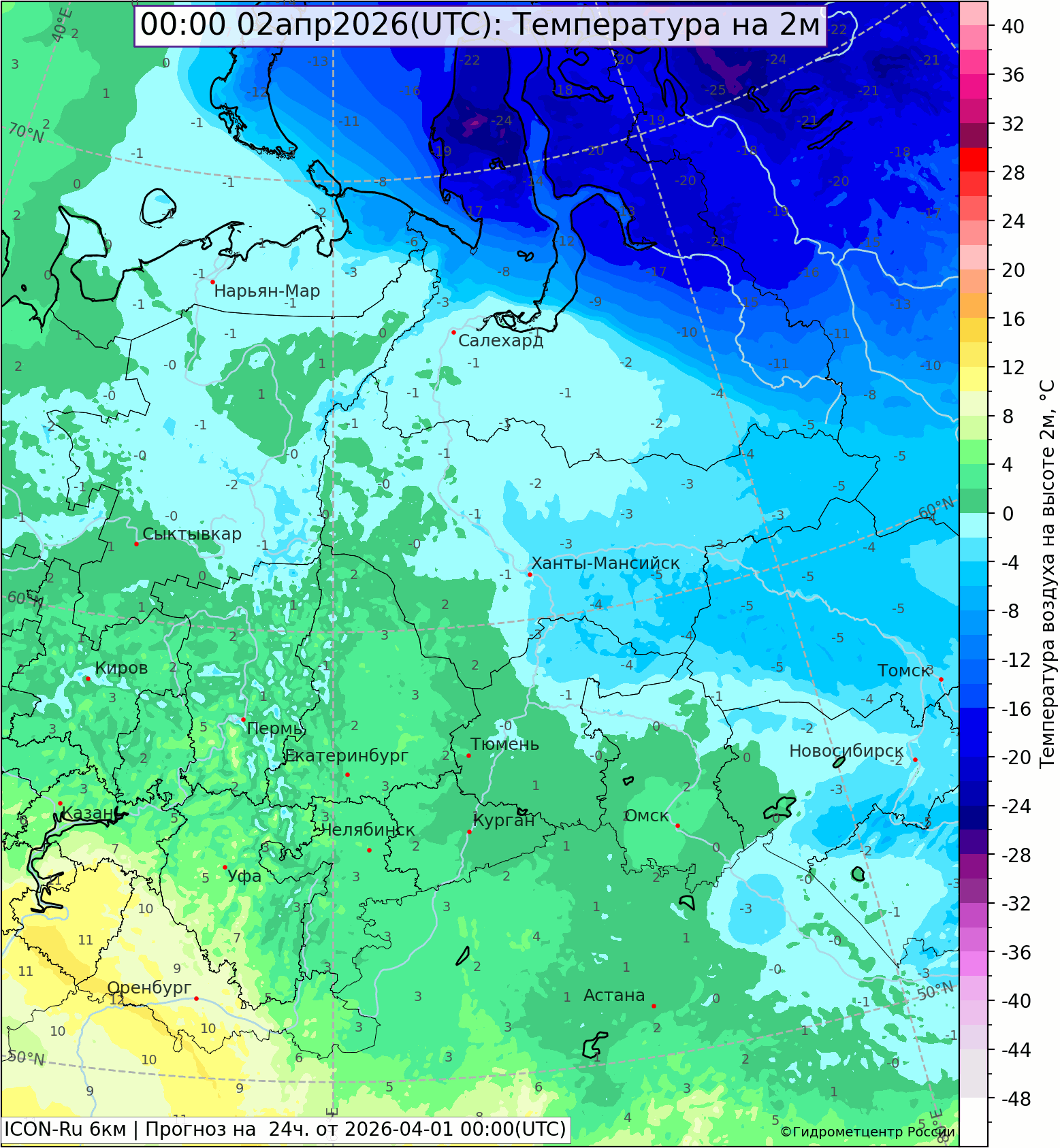 Прогноз температуры ночью и днем 2 апреля