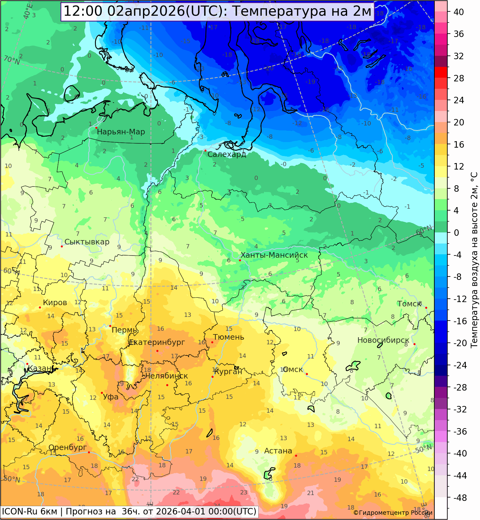 Днем в регионах было 15-19°, в северных районах 9-14°, ночью 1 апреля температура была 0,-5°, в Бурмантово -7,3°, выше 0°- в Качканаре +2,6°, Екатеринбурге +4,3°.